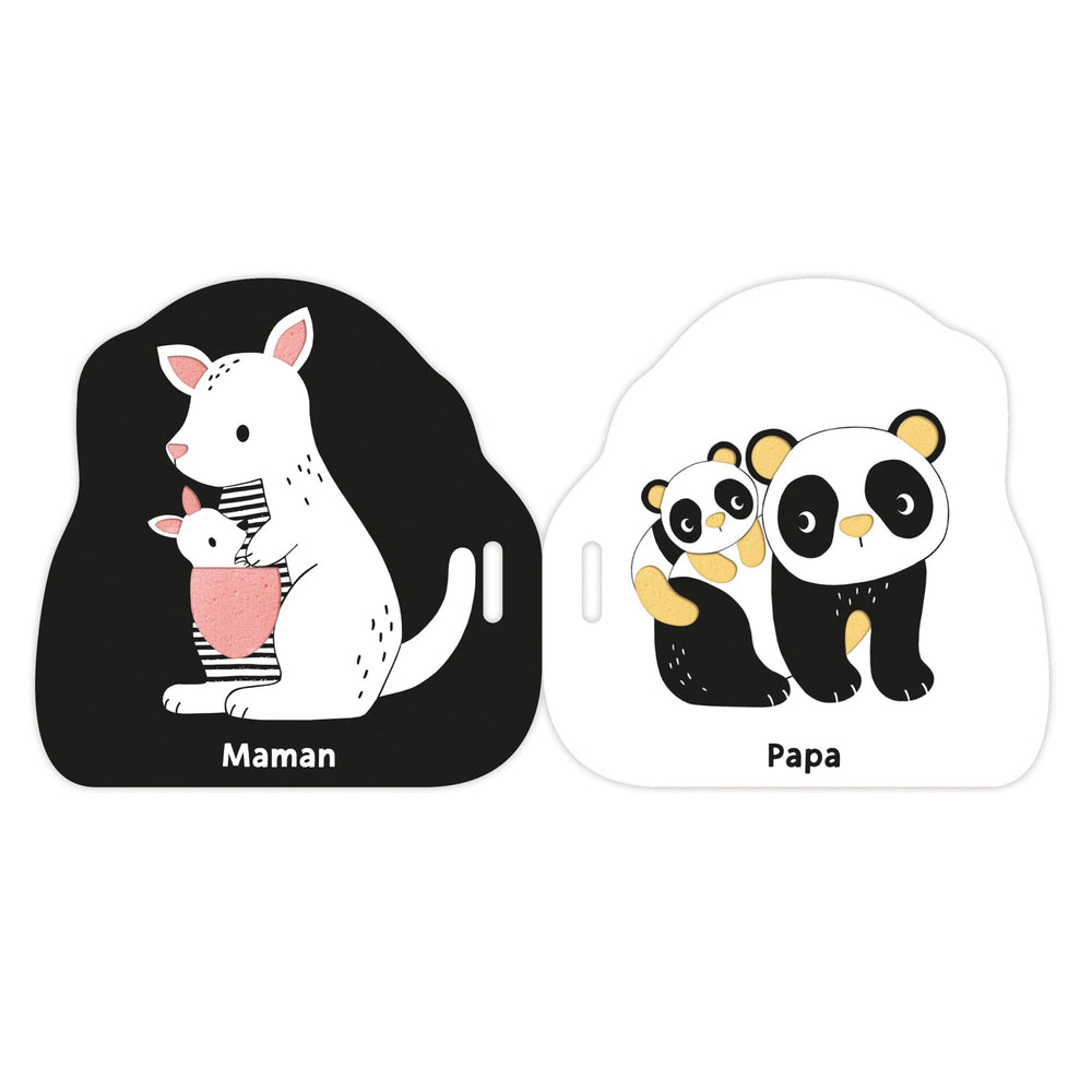 Ce petit livre en mousse tout léger est facile à manipuler pour les petites mains et se transporte partout avec sa lanière en tissu à scratcher !Les illustrations contrastées permettent un éveil visuel dès la naissance, et les pages en mousse colorées (accessibles à travers de petites découpes présentent sur chaque page) participent à l'éveil tactile de bébé. Un imagier pour apprendre ses premiers mots !