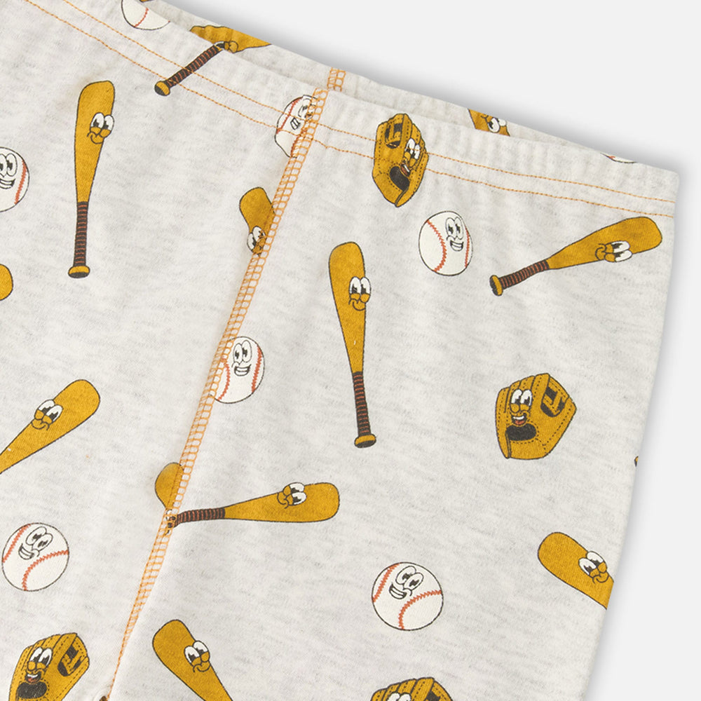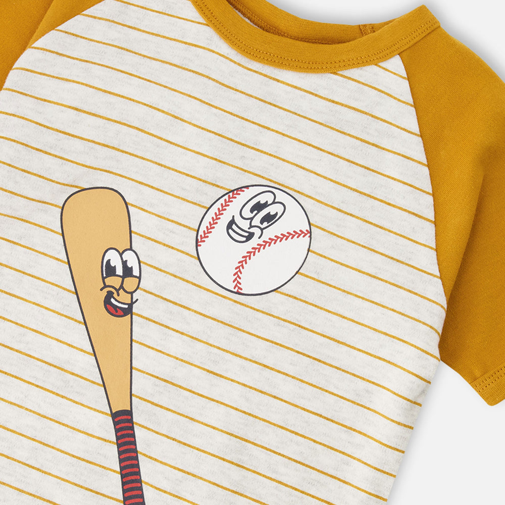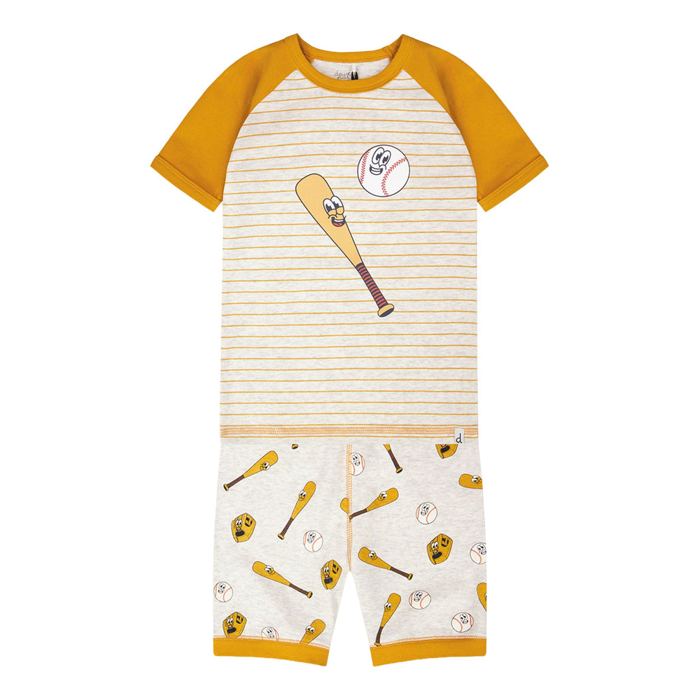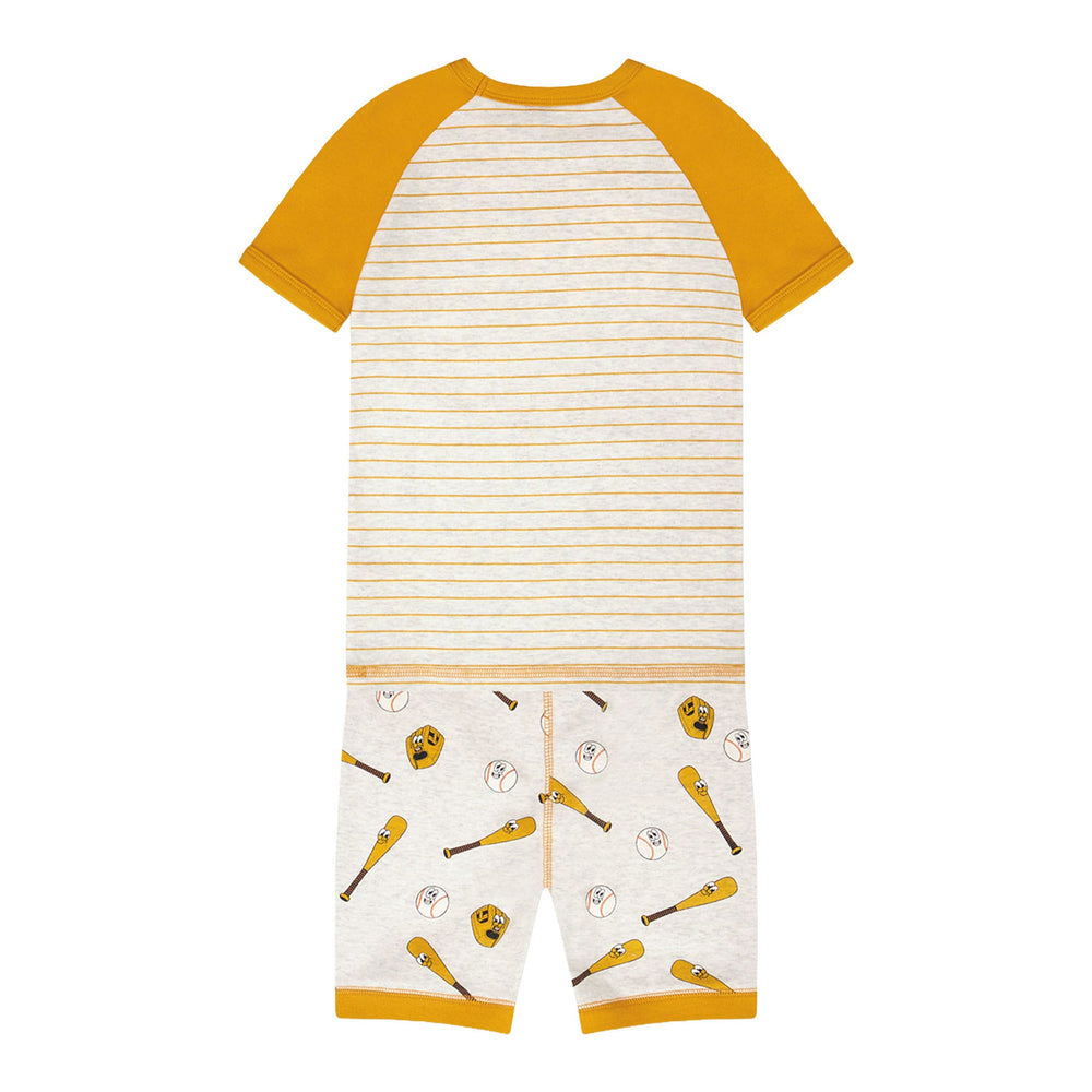 Les rêves deviennent un coup de circuit avec cet ensemble pyjama deux-pièces en coton biologique gris chiné à imprimé baseball issu de notre collection “Une nuit étoilée”. Cet ensemble a un t-shirt à manches courtes contrastantes et à rayures ludiques avec une batte et une balle amusantes, tandis que le short a un imprimé baseball intégral, une taille élastique pour plus de confort et des bordures contrastantes. Confectionné en 100 % coton biologique, cet ensemble est doux, respirant et parfait pour des nuits paisibles.
