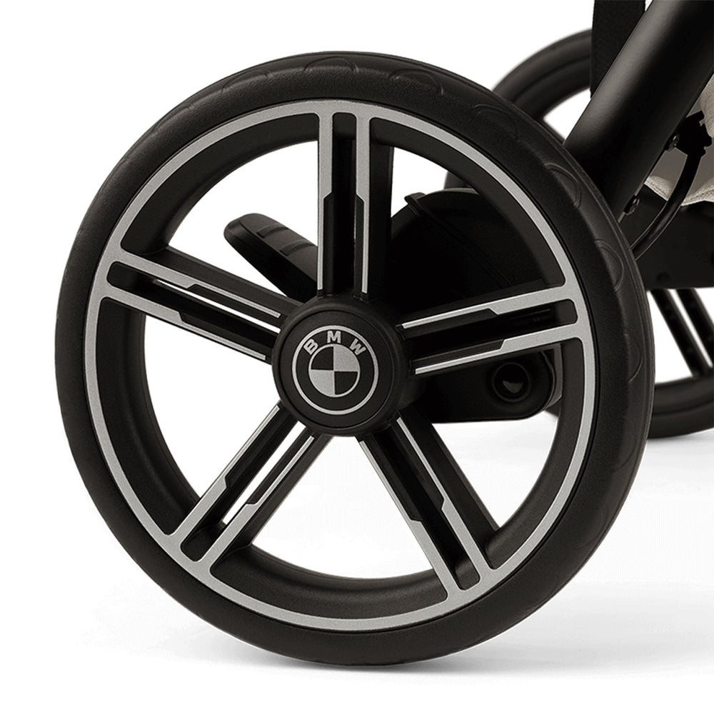 Roues haut de gamme avec logo BMW au centre des rayons.
