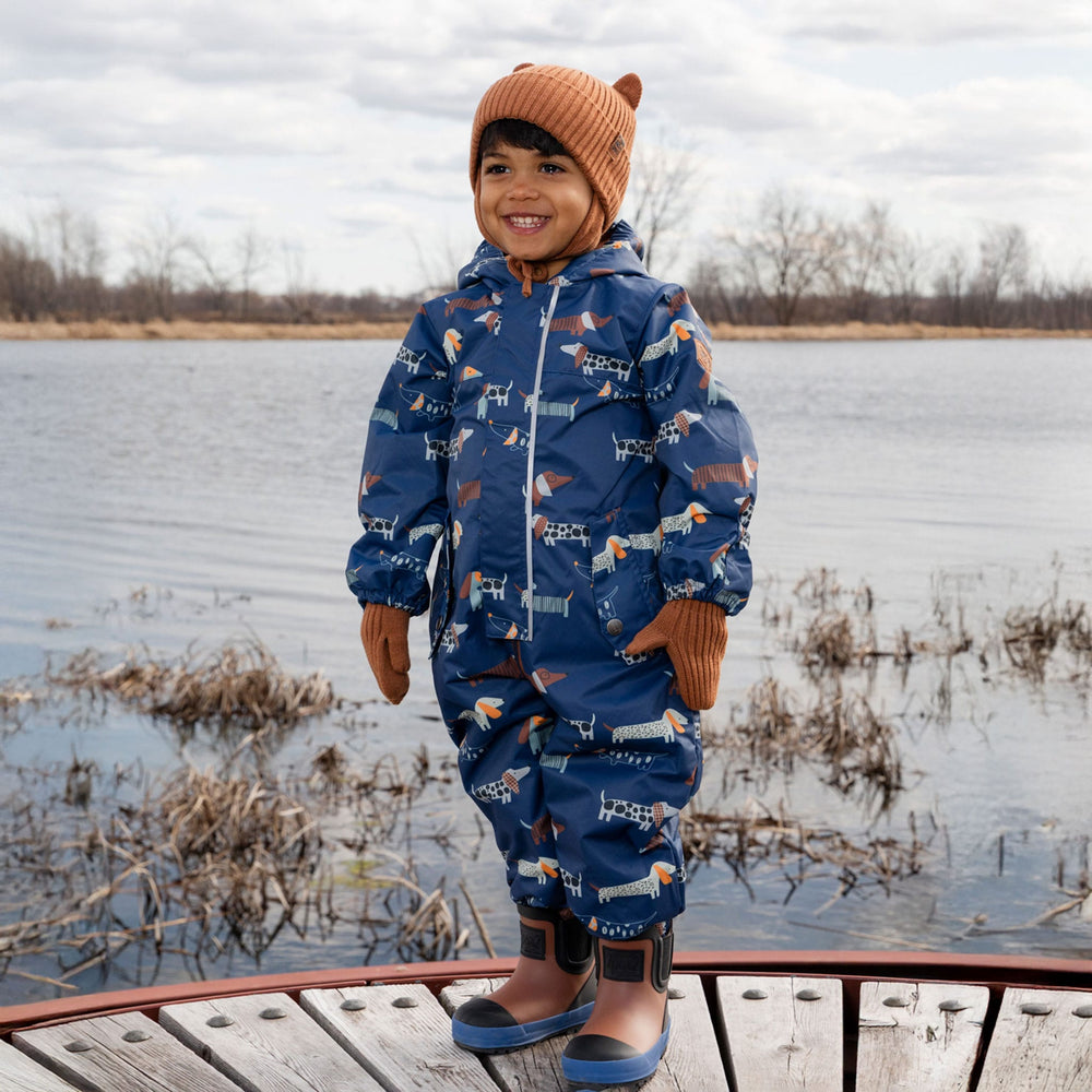 Élégant et fonctionnel, ce vêtement d’extérieur une-pièce pour bébé avec chapeau beige garde les petits garçons bien au chaud lors des sorties en plein air. Conçue à partir de tissu recyclé écologique, cette combinaison est doublée en polaire et dotée de revers aux mains et aux pieds pour un confort adaptable. Son traitement déperlant durable BIONIC-FINISH® ECO sans fluorocarbone assure une protection contre l’eau et la saleté, tandis que le bonnet en jersey brossé complète cet ensemble doux et pratique.
