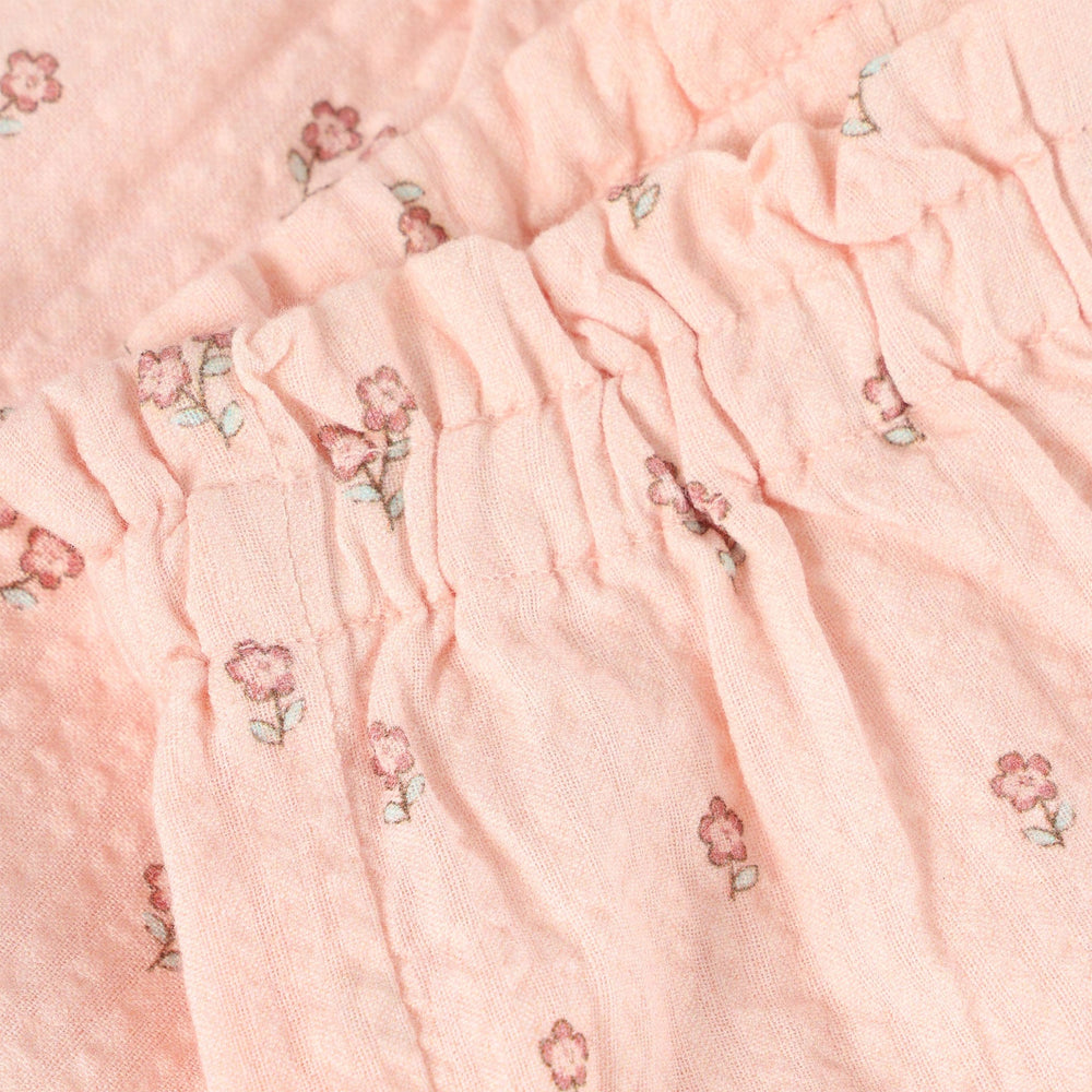 Pantalon Minymo. Ce pantalon est entièrement imprimé. Sa coupe est ample et il possède un élastique à la taille et aux chevilles. De plus, il présente un ourlet ondulé aux chevilles.