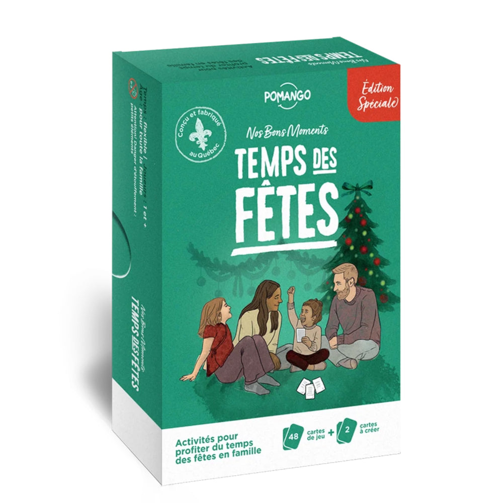 Le jeu Nos Bons Moments – Temps des fêtes propose 48 cartes d’activités simples, drôles et magiques pour mettre de l’ambiance dans vos soirées festives. Chaque carte transforme un moment ordinaire en éclats de rire et en complicité.