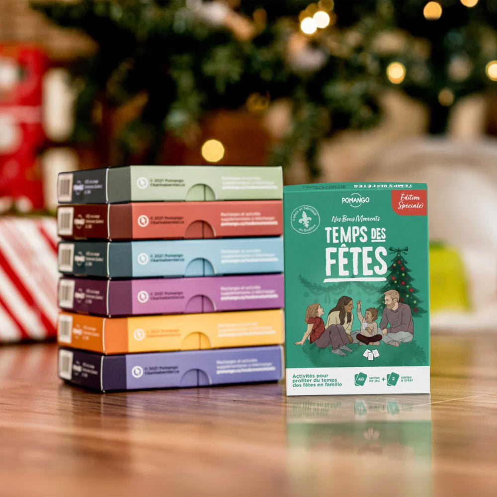 But du jeu : pigez une carte et laissez la magie de Noël s’installer. C’est simple et garanti sans écran!