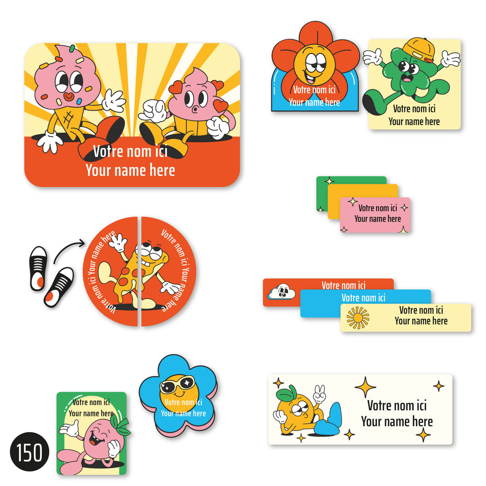 L’Édition Essentiel propose un équilibre parfait pour accompagner les enfants de la garderie à l’école. Elle contient 150 étiquettes autocollantes de plusieurs tailles, idéales pour marquer aussi bien de petits objets que de plus gros items. On y retrouve également 8 paires d’étiquettes spécialement conçues pour les souliers, facilitant l’autonomie des enfants dans leur routine matinale. Résistantes à l’eau, au froid, à la chaleur et à la vapeur, elles supportent le lave-vaisselle, la laveuse, la sécheuse, le micro-ondes, le congélateur et le réfrigérateur. Sans repassage requis. Il suffit de les appliquer sur une surface propre et sèche, puis de respecter un délai de 24 heures avant toute exposition à l’humidité. Chaque étiquette est personnalisée avec un nom et/ou numéro de téléphone imprimé en deux lignes de 16 caractères.