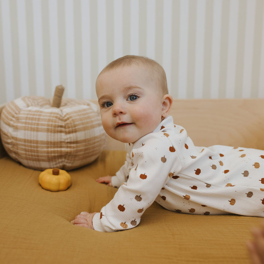 Un essentiel douillet pour votre petit trésor d’automne et le cadeau parfait pour les parents qui attendent une arrivée en saison. Confectionné en coton côtelé biologique doux, ce pyjama ultra-confortable leur assure une nuit de sommeil paisible. Avec ses pieds intégrés, ses poignets côtelés et sa fermeture éclair bidirectionnelle avec protège-zip en tissu, il est pensé pour des petites mains, des orteils bien au chaud et des changements faciles.
