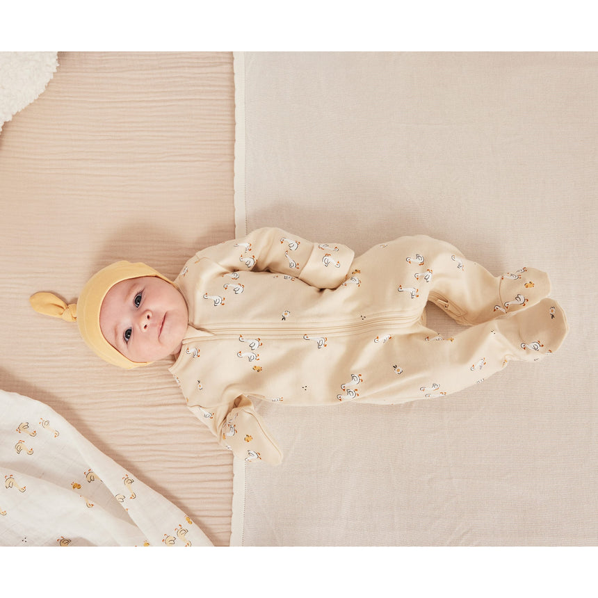 Les tout-petits seront bien emmitouflés pour aller au lit dans cette dormeuse à motifs de canetons. Douillette et respirante, cette dormeuse les maintient à la température idéale pour un sommeil réparateur. Elle est fabriquée à partir de coton interlock biologique tout doux sur la peau.