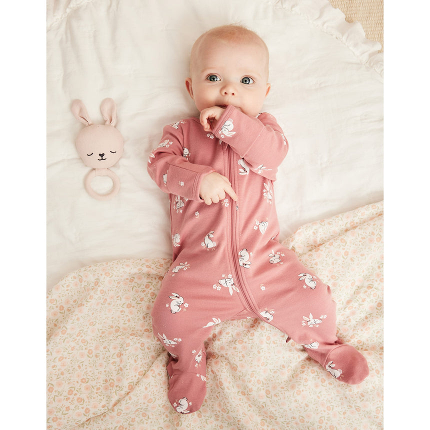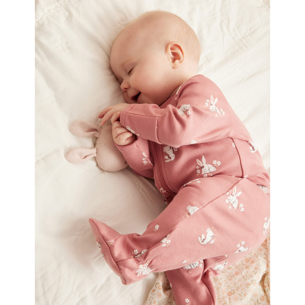Imprimée avec notre motif de lapin endormi, la dormeuse est assortie aux accessoires et aux autres vêtements de nuit de la même collection layette, ce qui en fait une excellente idée de cadeau pour les futurs parents.