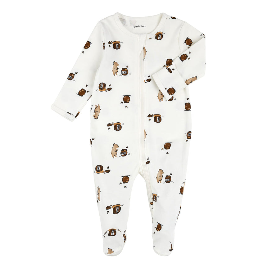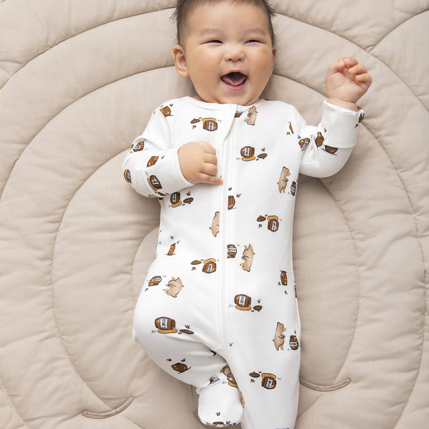 Cette dormeuse, avec son imprimé « Oursons gourmands » va vite devenir l’incontournable de la garde-robe de votre nouveau-né. Les parents savent très bien que l’on n’a jamais trop de dormeuses pendant les premiers mois. Les plus petites tailles (Nouveau-né à 3 mois) sont munies de mitaines anti-égratignures tandis que les tailles plus grandes ont des poignets côtelés pour plus de confort.