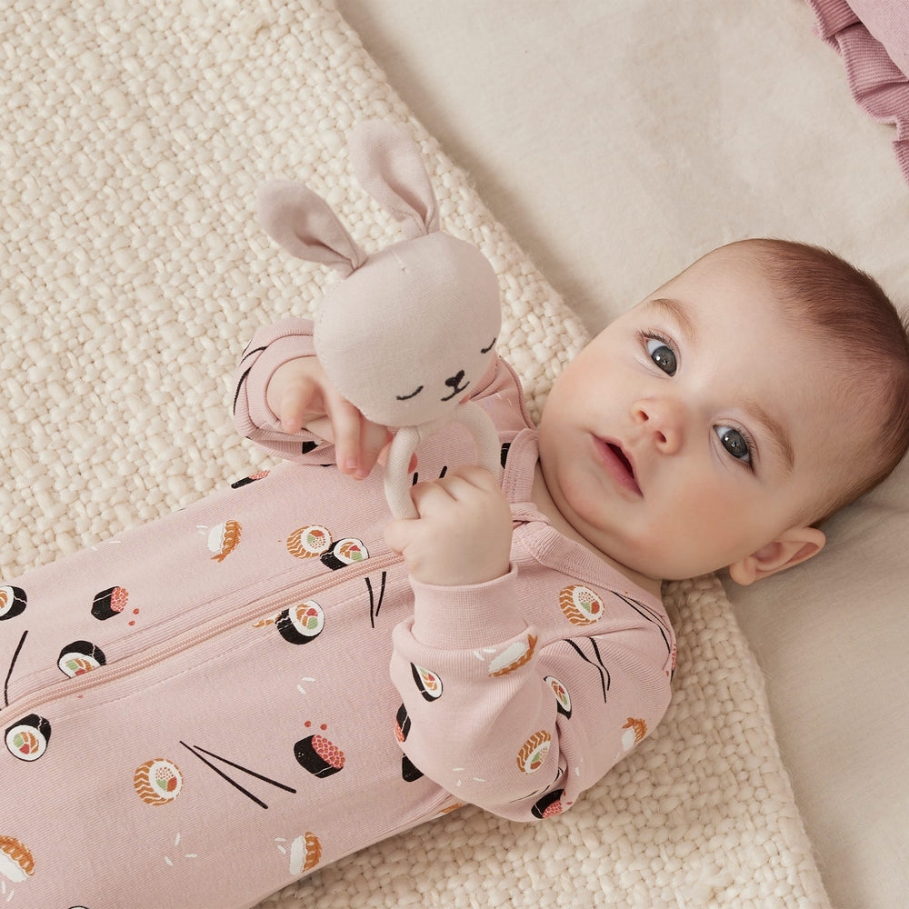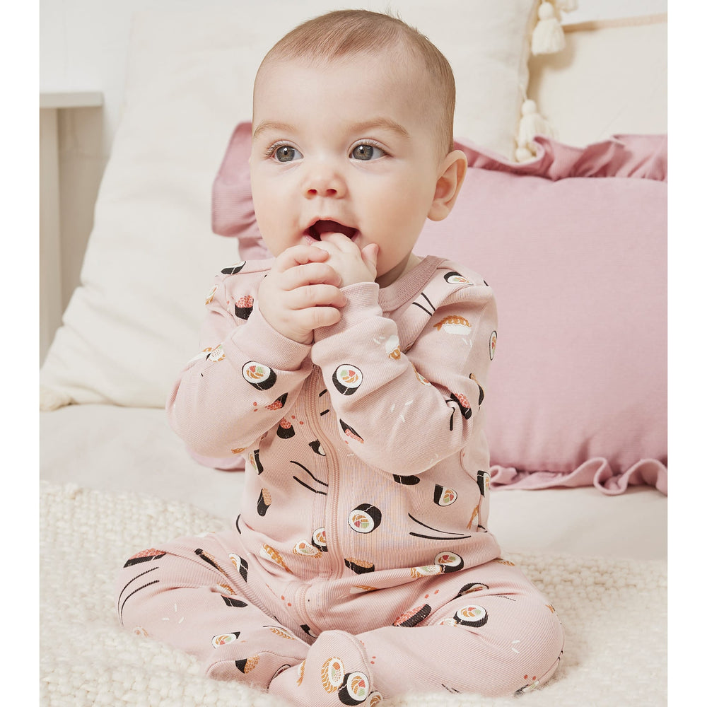 Laissez-la s’endormir enveloppée de douceur avec ce pyjama à pieds en coton biologique. Son imprimé Sushi, ses poignets côtelés et ses pieds intégrés la garderont aussi bien emmitouflée que le riz d’un maki. Léger et respirant tout en restant bien chaud, il aide à maintenir la bonne température pendant le sommeil. Des PJs coordonnés sont disponibles pour les aînés, pour un duo ludique jusqu’à l’heure du dîner.