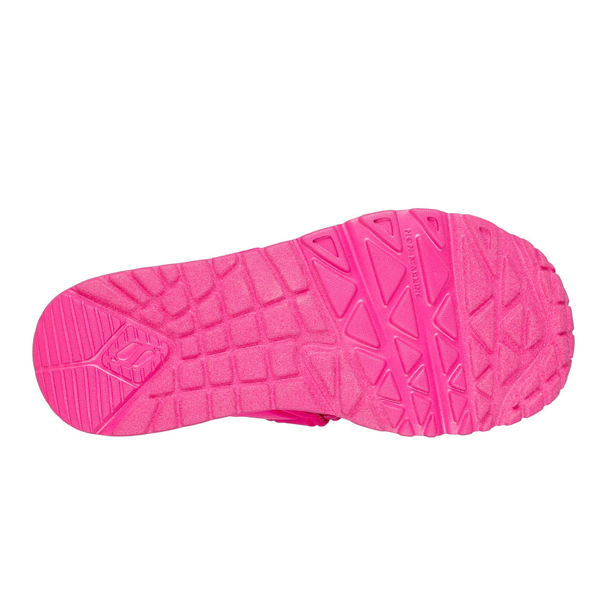 Choisissez le style emblématique Uno, fait pour les beaux jours, avec la chaussure Skechers Street™ Uno Lite Sandal - Sunny Stand. Cette sandale de type chaussure de sport monochrome comprend une sangle en T, une empeigne en tissu légèrement rembourré, une sangle arrière, une sangle de cambrure réglable et une semelle intérieure coussinée.