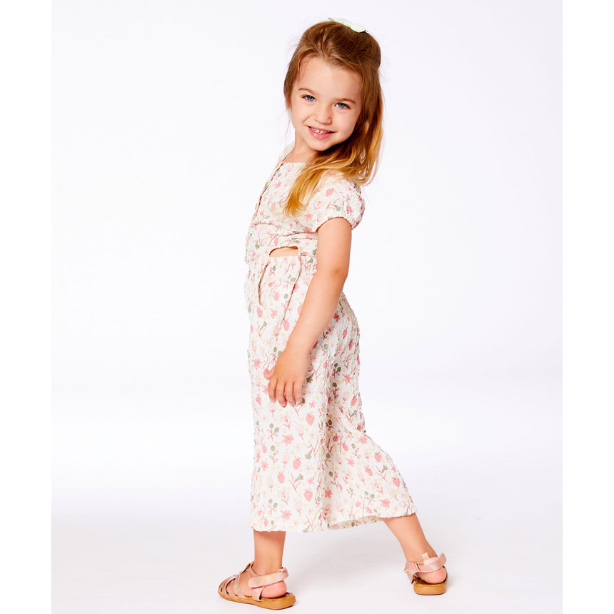 Les découpes latérales ajoutent une touche ludique à notre combinaison en cotonnade gaufrée avec découpes imprimée à fleurs roses sur fond crème. Cette combinaison à la silhouette facile d'une seule pièce présente un corsage à manches courtes, des petites découpes à chaque hanche et un pantalon à jambes larges raccourcies. L'imprimé de fleurs et de fraises sur l'ensemble de la pièce la rend aussi mignonne que possible !