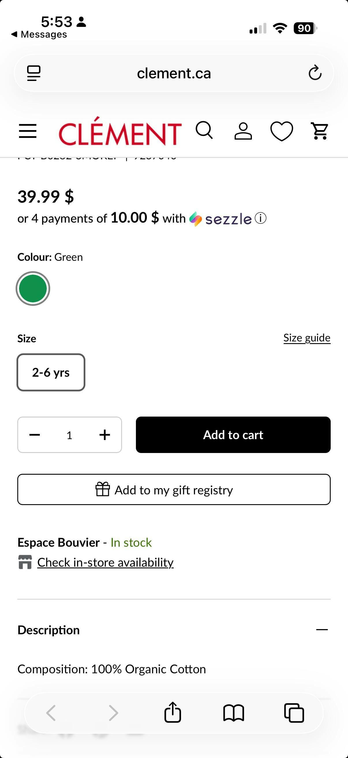 Nous offrons la livraison gratuite* sur les commandes de plus de 100$ de vêtements, chaussures et petits accessoires. Des frais de livraison de 7$ s'appliquent pour les commandes de moins de 100$.