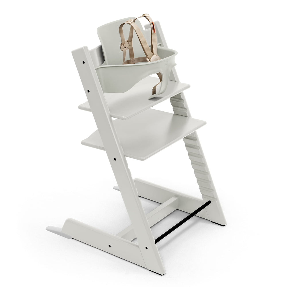 L'ensemble chaise Tripp Trapp® + nouveau set pour bébé Tripp Trapp® constitue un ensemble idéal pour amener votre bébé à la table à manger et plus près de la famille. Cette configuration convient à partir du moment où votre enfant peut s'asseoir sans aide (environ 6 mois). Le set pour bébé Tripp Trapp® dispose désormais d'une nouvelle boucle de harnais sûre, facile et intuitive, de 2 points d'attache et d'un bouton de libération rapide d'un simple clic. Harnais entièrement amovible pour un nettoyage plus facile (lavable en machine). Après le nettoyage, attachez-le de nouveau au set pour bébé en environ 30 secondes ! 2 emplacements de rangement pour les clés Allen à l'arrière du dossier. Deux encoches où les sangles arrière du nouveau harnais peuvent être passées. La chaise Tripp Trapp® a un siège et un repose-pieds réglables en profondeur et en hauteur. Non seulement les ensembles Tripp Trapp® offrent une expérience d'achat pratique, mais ils offrent également plus de valeur que l'achat de chaque élément séparément.