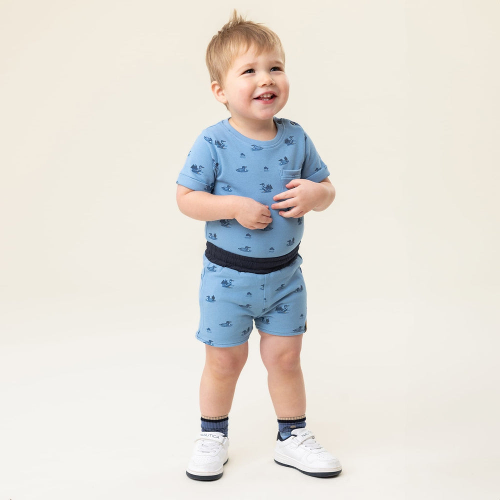 -Bermuda réversible en jersey uni et en jersey piqué imprimé
