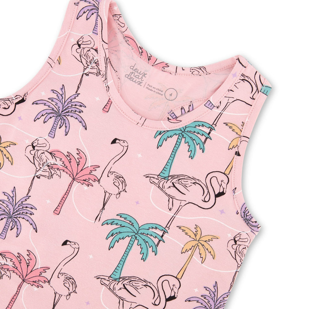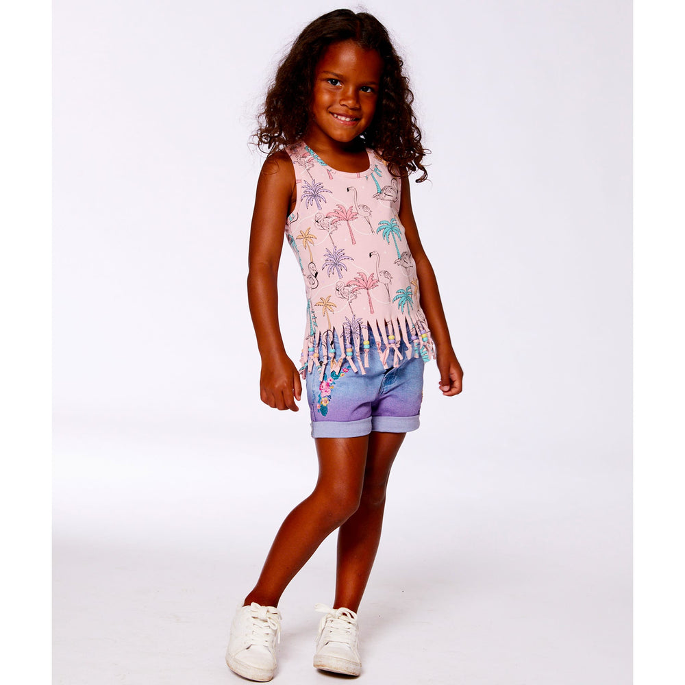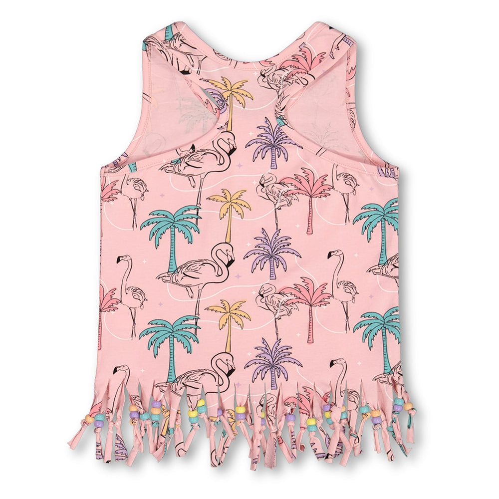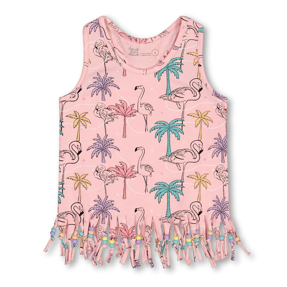 Avec ses franges et ses perles, notre camisole à franges imprimée avec palmiers, flamants roses et turquoise en coton biologique offre un style audacieux d'inspiration rétro ! Frangée à l'ourlet et rehaussée de perles multicolores, cette camisole est dotée de larges bretelles, d'un col dégagé confortable et d'un dos nageur sportif. Associez-la à un legging assorti ou portez-la avec un short en denim coloré pour créer une variété de looks amusants !