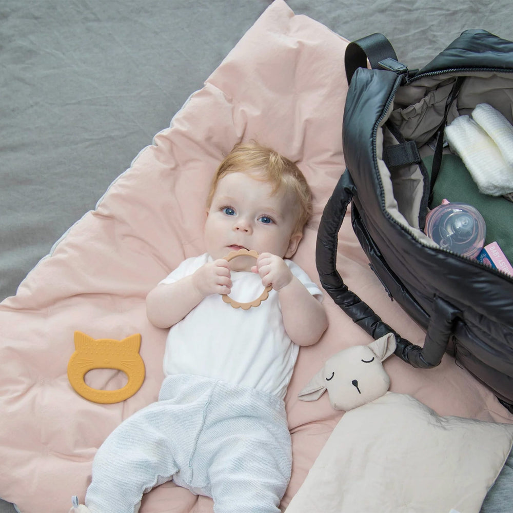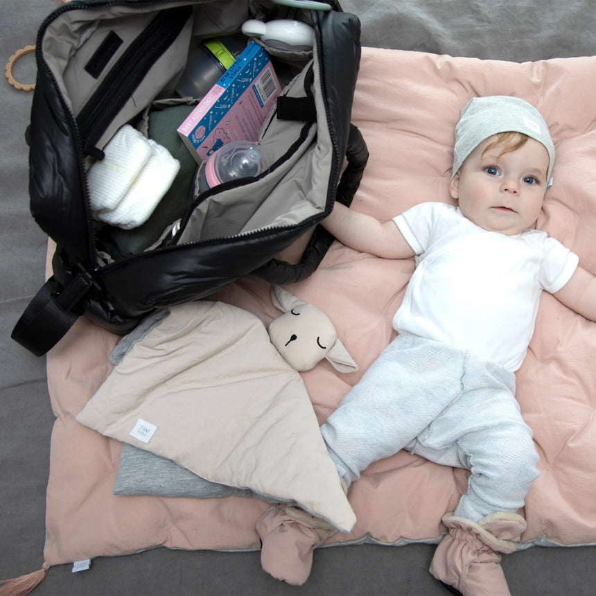 - Includes (Diaper Bag mode): fleece-lined cushioned changing pad, independent zippered wallet pouch, 2 stroller straps, crossbody strap