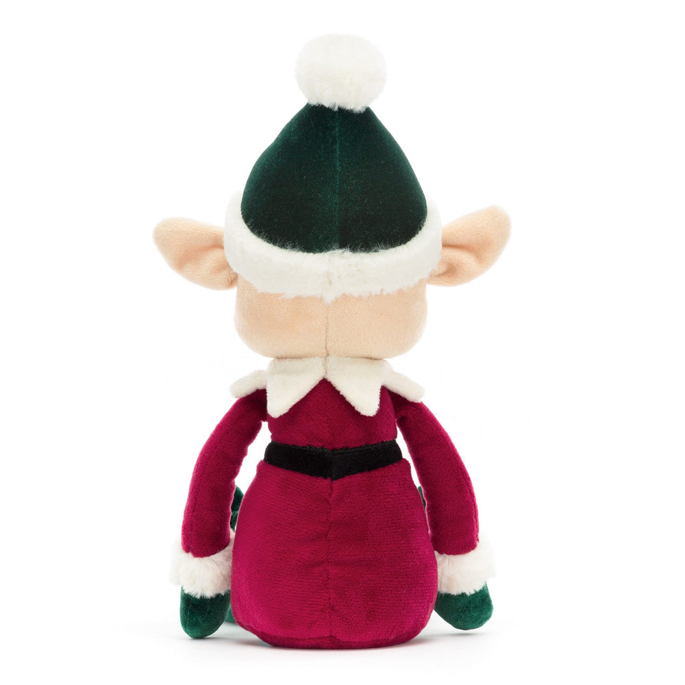 Everyone needs a helper, not just Santa! Eldo Elf is a charming friend with rosy cheeks and fold-detail ears. This dandy pixie wears a mulberry suit with a cream star collar and gold-buckled belt, paired with curly velvet boots and matching ivy green bobble hat. With an affable smile, Eldo is here to boost the Christmas cheer!