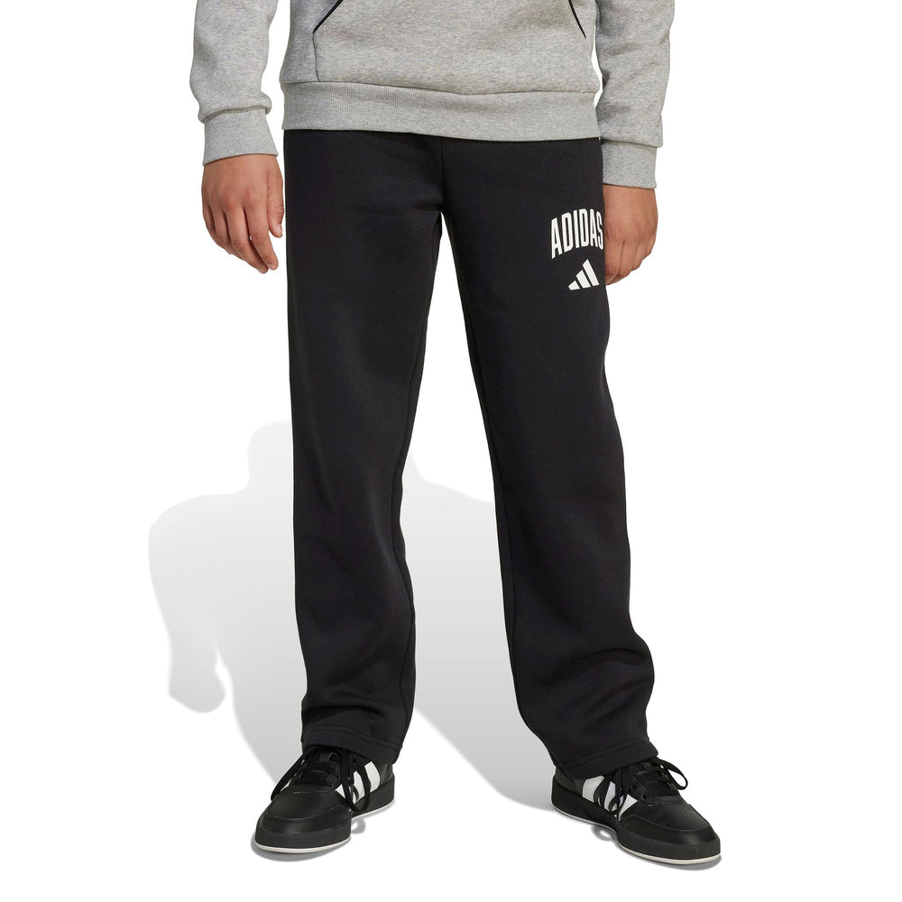 Black joggers for boys and girls by Adidas Kids. Made from soft cotton, they feature the brand’s logo print in white on the front. Designed with two pockets and finished with an elasticated waist and drawstring for a comfortable fit.