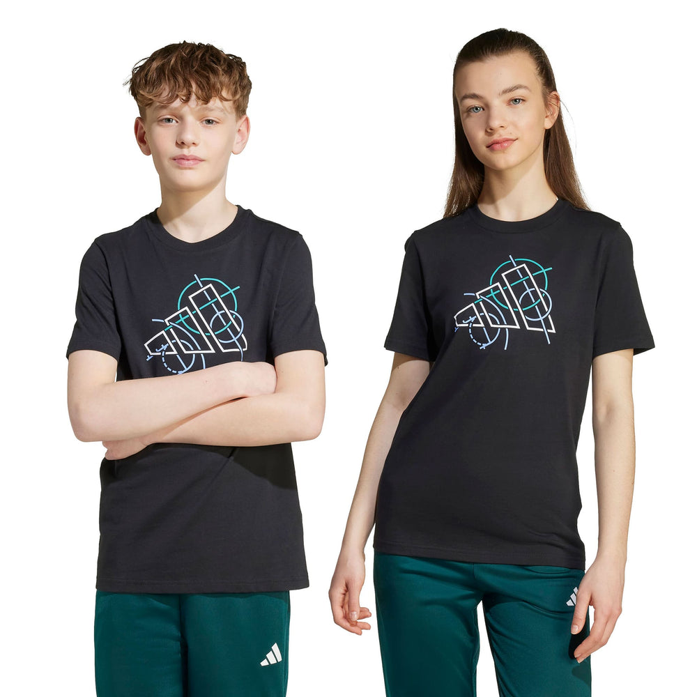 Let your junior shine in the Tech Outline Graphic T-Shirt. This unisex tee, crafted from 100% cotton, offers a regular fit that’s neither too tight nor too loose, making it perfect for everyday wear. The soft knit jersey ensures comfort and durability, while the sporty graphic adds a modern touch. Rooted in responsibility, this shirt reflects adidas’ commitment to quality and the environment.