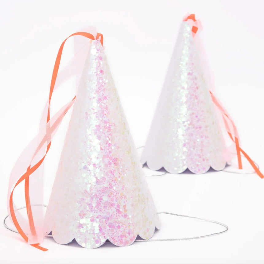 These pretty hats are perfect for a magical princess party. Beautifully crafted with a scallop edge, glitter and gorgeous ribbons, they'll instantly transform party guests into royalty.