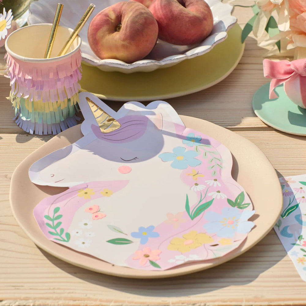 The combination of unicorns and meadow flowers is a match made in party paradise. These pretty paper plates will instantly add a decorative touch to your unicorn birthday party or princess party. Ideal for table layering, with classic pastel tones and modern pops of shiny gold foil and neon.