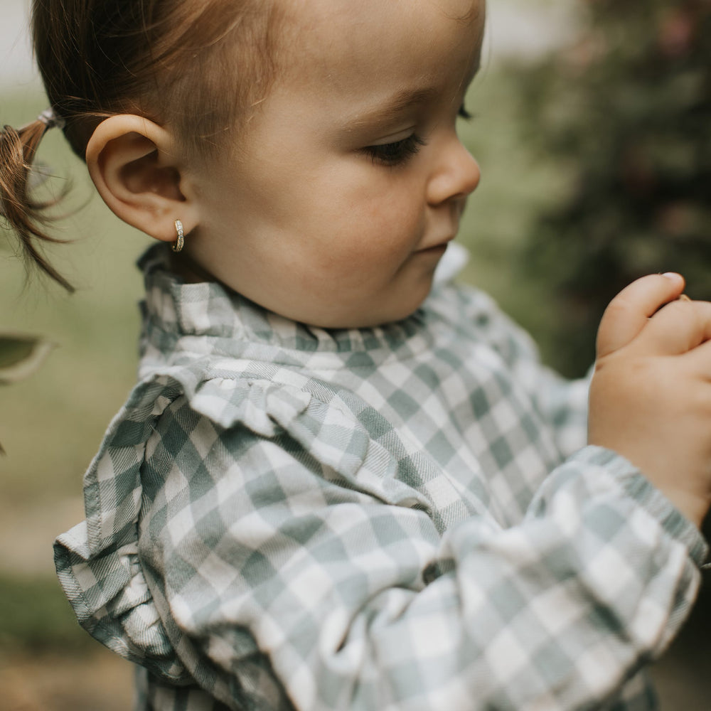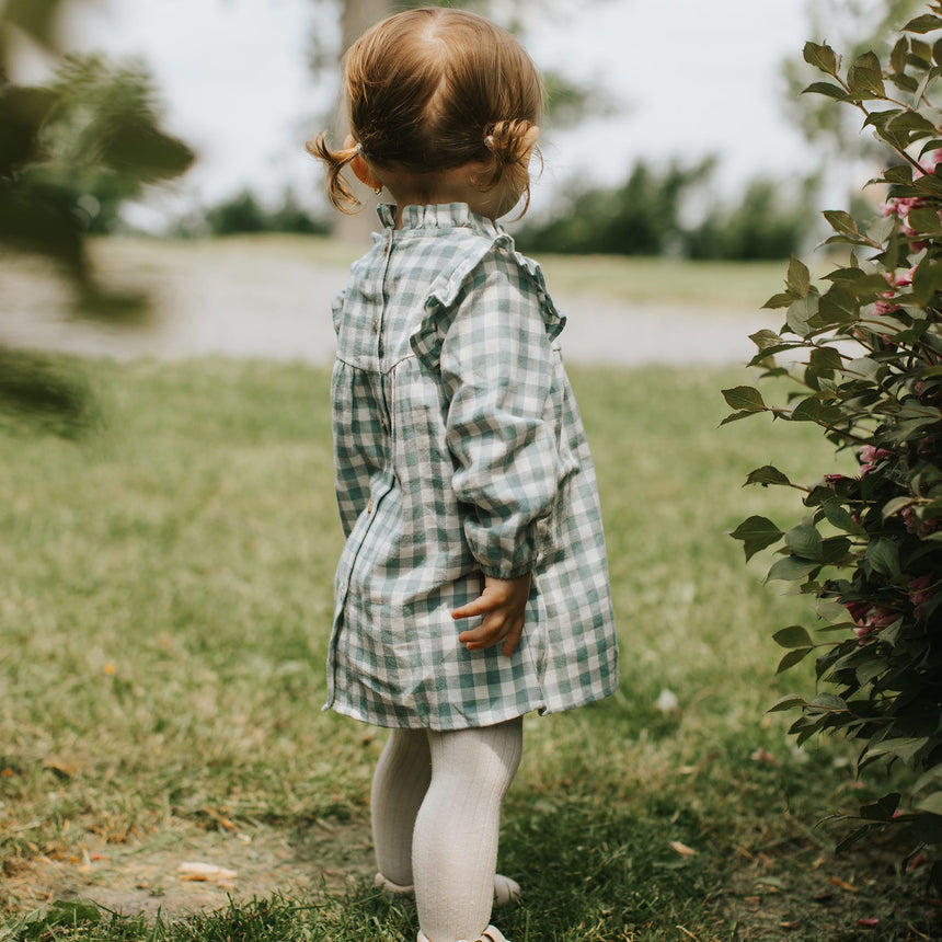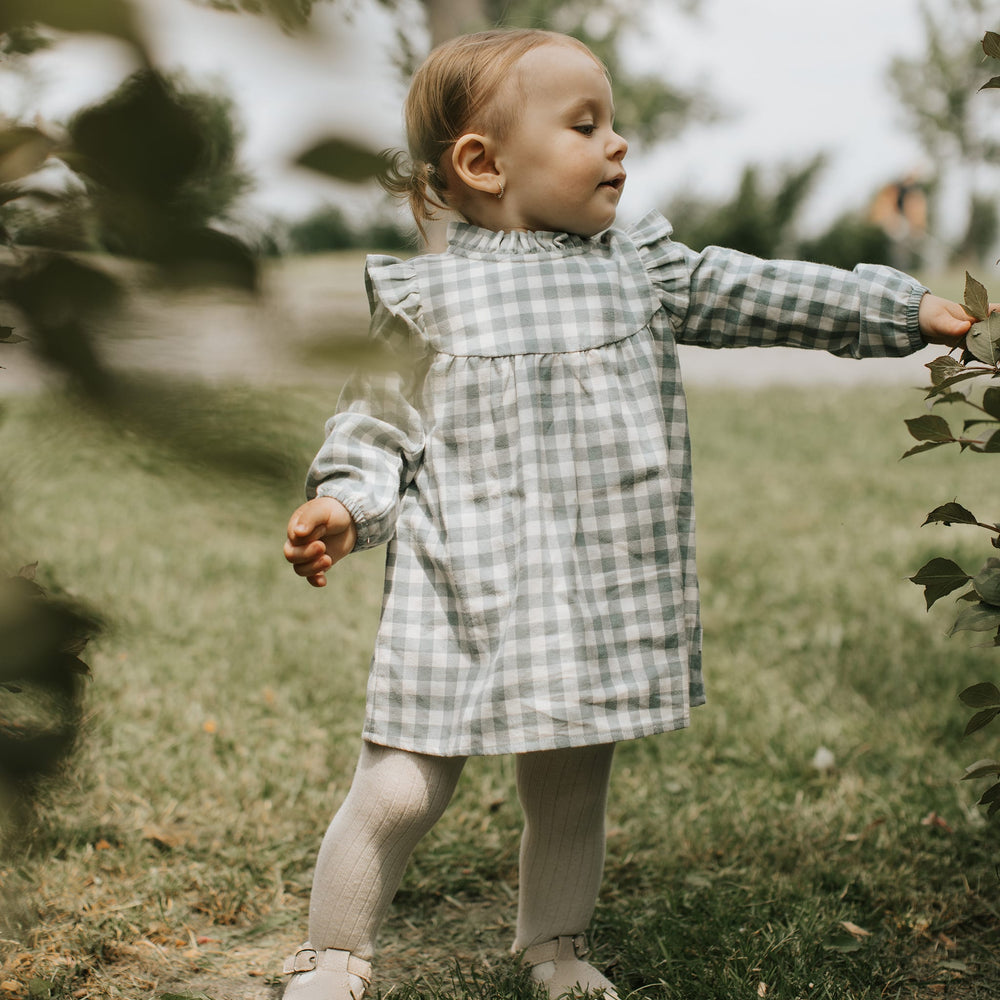 A timeless gingham set is a wardrobe staple for every girl (little or grown-up). Made with the softest brushed twill for a warm and cozy feel, the dress is perfect for the Fall when temperatures begin to drop. The long-sleeved dress has frilly detailing and a button placket at the back for easy dressing. As the weather gets colder, the rib-knit tights layer underneath for extra warmth and a totally adorable finish.