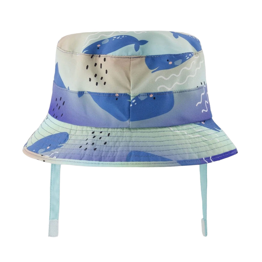Bring a bloom of charm to sunny days with this beach hat in purple with flower print. Designed with wide brim protection and a pretty allover floral motif, this hat adds both style and shade to outdoor fun. The practical chin straps keep it securely in place, while the recycled polyester fabric with soft lining ensures comfort all day long. Pair it with any outfit from our "Like A Fish To Water" collection. Please note that there are no drawstrings in children's size 2/3 & 4/5.