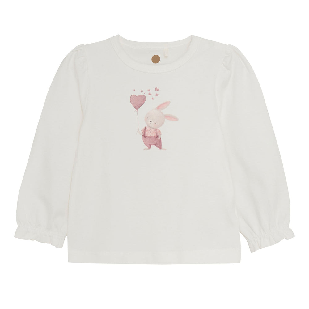 Sweet long-sleeved T-shirt with a lovely front print. Made from a soft cotton quality that feels comfortable against the skin. The T-shirt has long sleeves with elasticated wrists, creating an elegant ruffle effect. Certified acc. to GOTS - organic CERES-0366