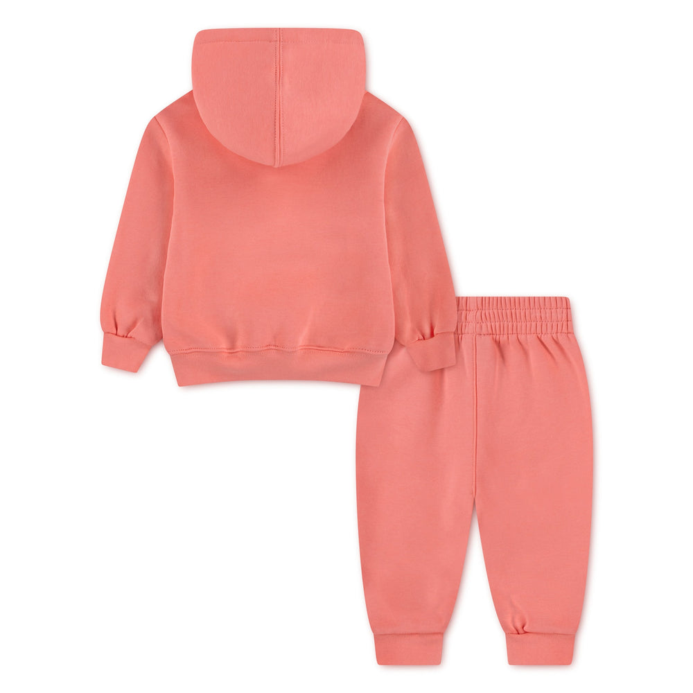 Made of blended cotton fleece with a smooth outside and a soft inside, this two-piece set from Jordan is an easy way to dress your little baller-to-be for everyday play. The hoodie has a roomy cut for easy layering over a bodysuit or tee. The matching pants have a stretchy waistband that provides a comfy fit and the tapered legs with ribbed cuffs create a cozy, secure feel that keeps up with movement.