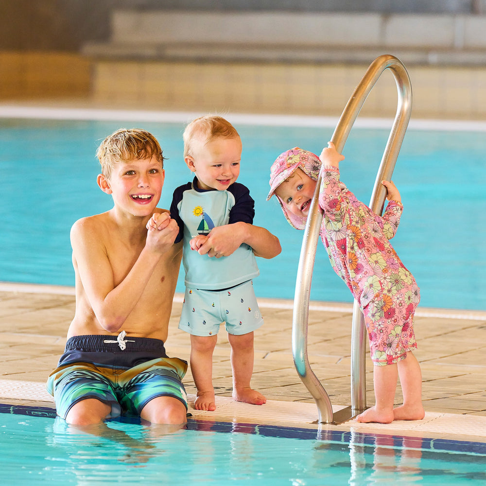 OEKO-TEX® STANDARD 100 Cert. No. 2276-364 DTI, Tested to UV STANDARD 801 UPF 60+ Long-sleeved swim T-shirt from Color Kids. The T-shirt is flexible and comfortable to wear. Certified acc. to OEKO-TEX® STANDARD 100 Cert. No. 2276-364 DTI Tested and certified acc. to UPF 60+. To determine the UPF rating, the fabric is tested in both new and used conditions, following the UV STANDARD 801 method. The entire product is then CE-certified under PPE regulations.