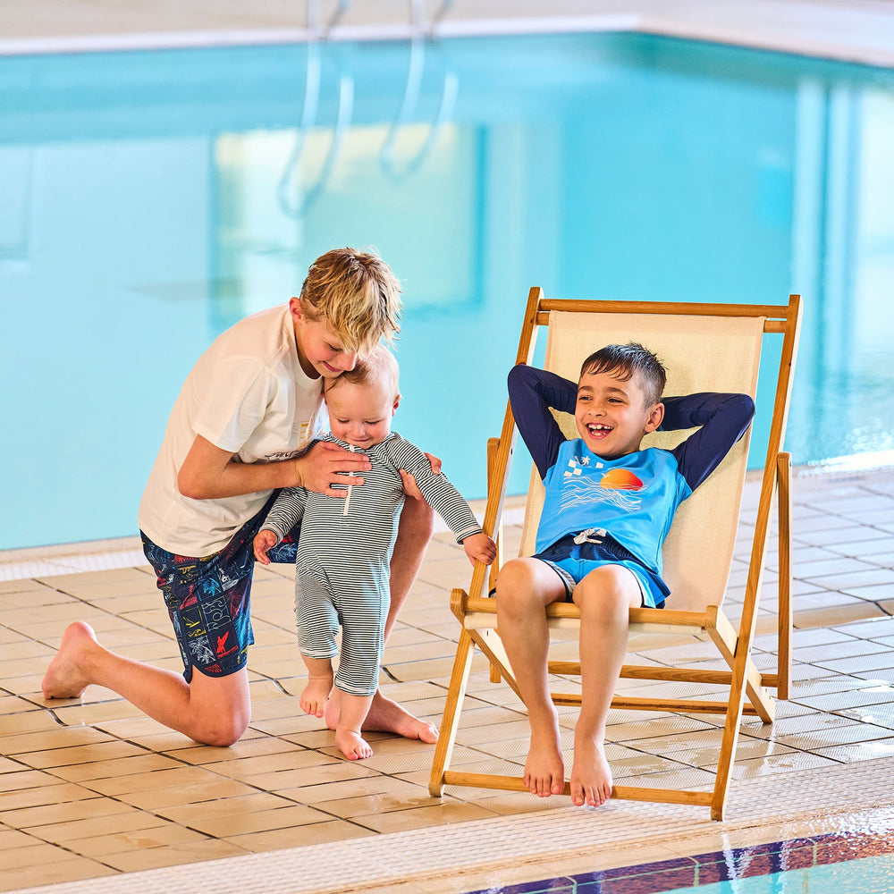 OEKO-TEX® STANDARD 100 Cert. No. 2276-364 DTI, Tested to UV STANDARD 801 UPF 60+ Swimsuit with long sleeves and a striped pattern from Color Kids. The swimsuit has a front zipper and is both flexible and comfortable. Certified acc. to OEKO-TEX® STANDARD 100 Cert. No. 2276-364 DTI Tested and certified acc. to UPF 60+. To determine the UPF rating, the fabric is tested in both new and used conditions, following the UV STANDARD 801 method. The entire product is then CE-certified under PPE regulations.
