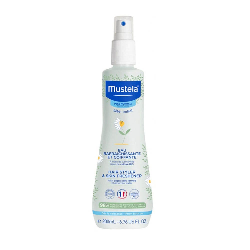 The Refreshing and Styling Water with Organic Chamomile Water delicately perfumes and refreshes the baby's and child's skin. It also facilitates brushing and brightens hair, from birth*. The refreshing and styling water can be used on both the baby's hair, body, and neck.