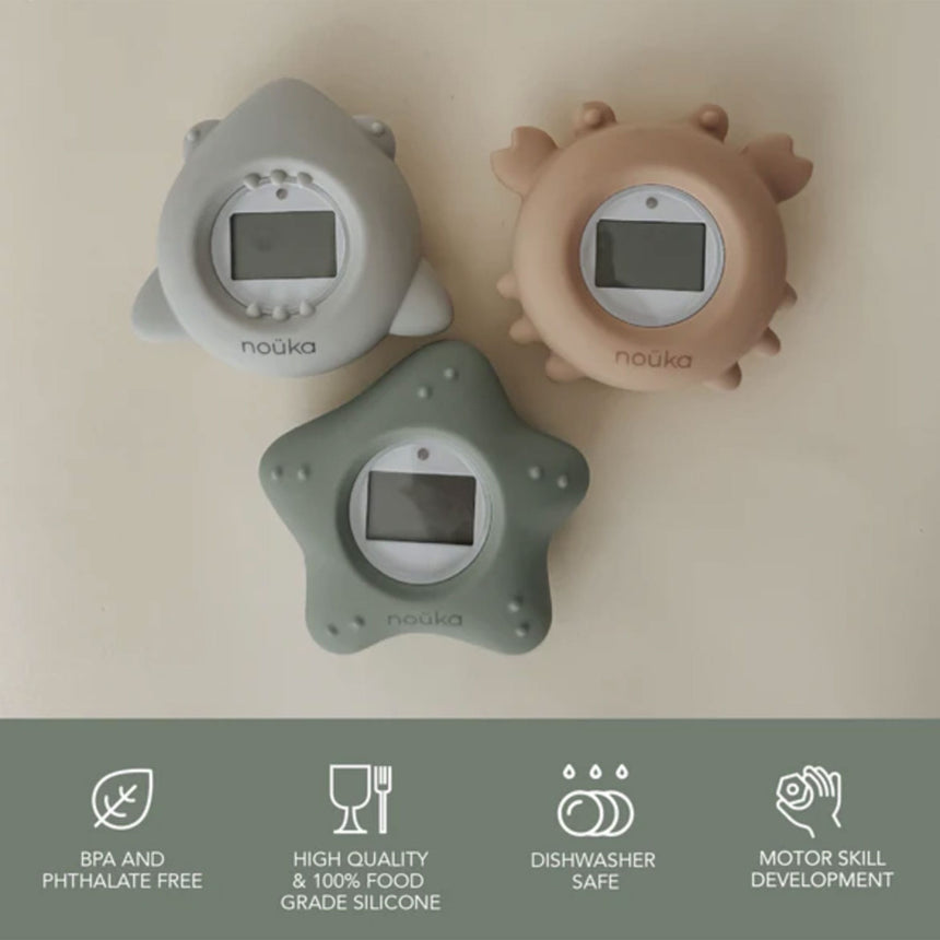 At noüka, we understand that bath time should be fun, safe, and comfortable for both parents and toddlers. That’s why we’ve created the Bath Time Safety Thermometer, designed to ensure the bathwater is always within an ideal temperature range for your little one. With light indicators that alert you if the water is too hot or cold, this adorable thermometer is not only a safety tool but also a fun and interactive way to keep your child entertained as it floats in the water.