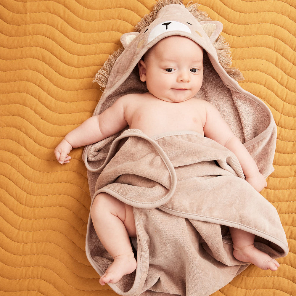 Make bath time even cuter with this lion hooded towel and coordinating washcloths. Made from ultra-soft terry cloth and organic cotton, the towel is gentle on their delicate skin when you bundle them up for cuddles before bed.