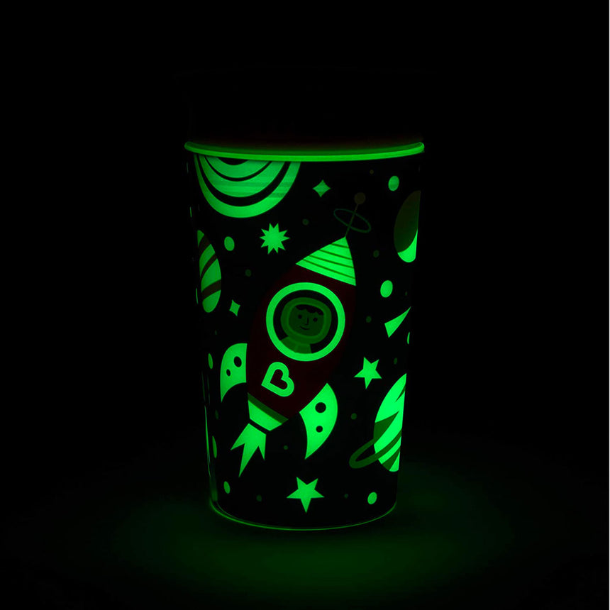 -This spill-proof cup glows in the dark, making it the perfect nighttime water cup