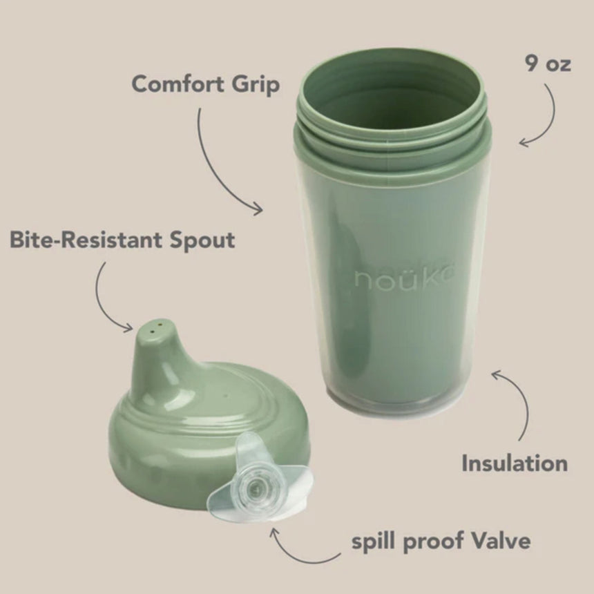 Leakproof and equipped with a bite-resistant hard spout, the noüka Insulated Cup prioritizes safety and mess-free hydration. Whether it's a refreshing sip or a warm drink, this cup is designed to make every moment enjoyable for your little one.
