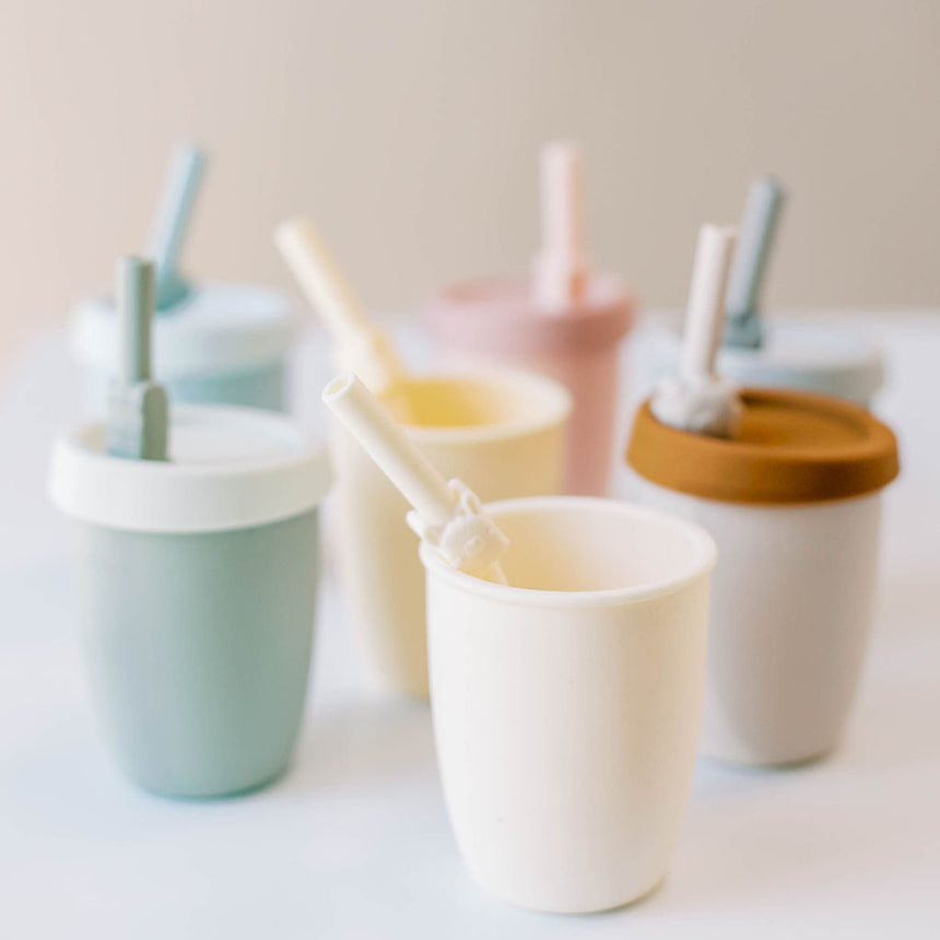 The silicone cup with lid and straw makes the transition from bottles to sippy cups easy! Toddlers can use the cup with or without the straw. The soft silicone straw helps support baby-led weaning, and drinking from an open cup promotes healthy oral and speech development.