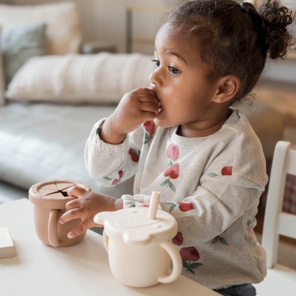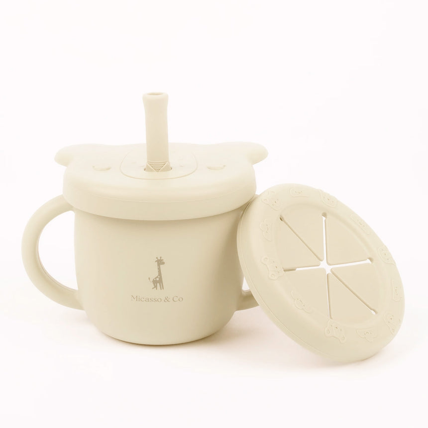 The 2-in-1 silicone cup by Micasso & Co is not only highly resistant, durable, and aesthetically pleasing, but it also doesn't easily spill. The removable lid features a wall that makes it very sturdy and not easily removable by your little one's hands. Consequently, the lid stays securely in place during use.