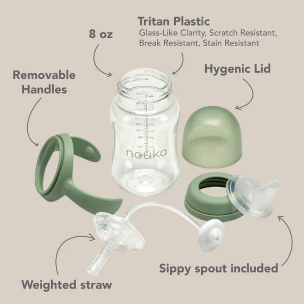 Introducing noüka's Drinking System, a comprehensive solution guiding your baby seamlessly from breast to bottle to cup. Specifically designed with both style and functionality in mind, the noüka Drinking Range offers a thoughtful collection of drinkware to facilitate your baby's journey towards independent drinking.