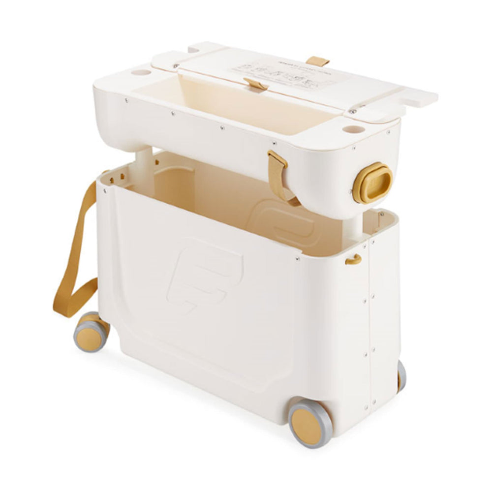 The BedBox™ is a premium, and the world's only, ride-on suitcase for children with an inflight bed or leg-rest feature. This travel essential combines Scandinavian style and aviation inspired design with practical features for the entire journey, and allows your child to rest comfortably or sleep during long and short haul flights. Fun and functional with ample storage, the BedBox™ holds your child’s must-haves. Once packed, let your little one ride it (or pull it) through the airport terminal for stress-free transport. Once the seat belt sign is off, transform the BedBox™ from a suitcase to a bed in 5 simple steps.