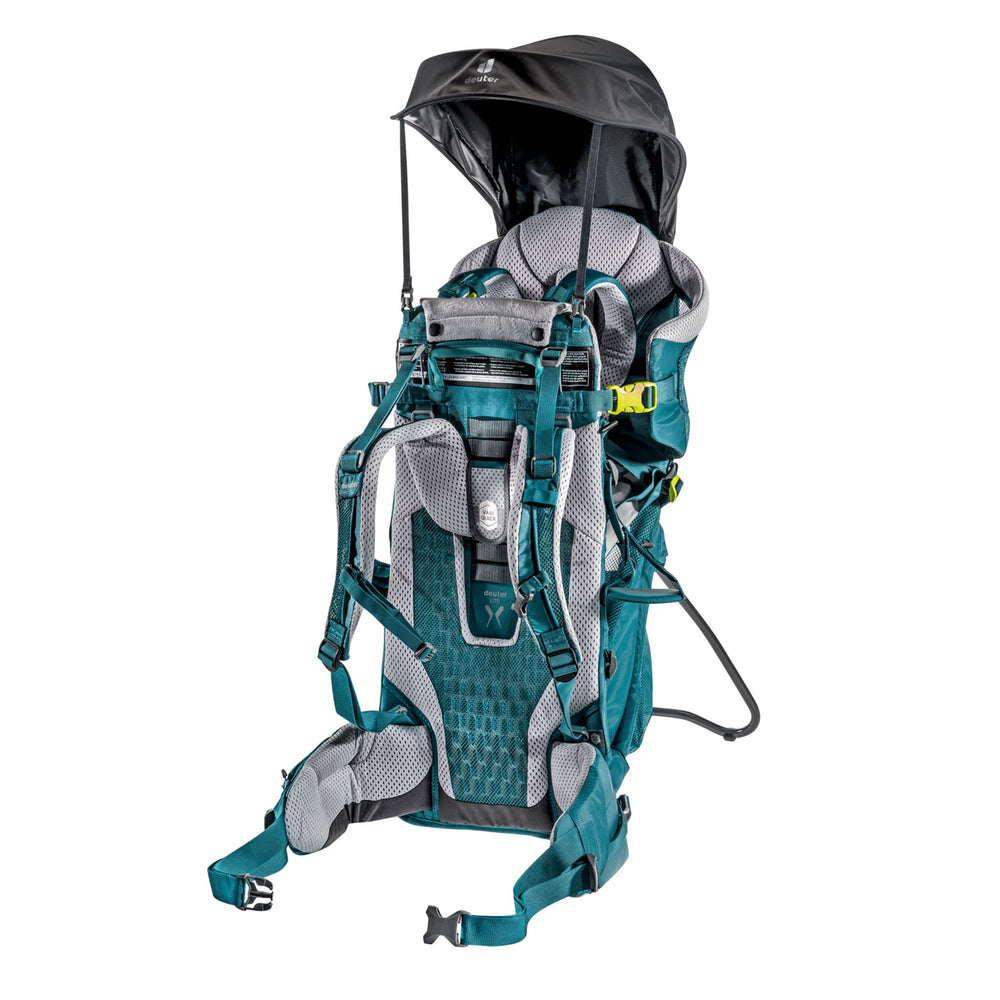 The carrying system is specially adapted to the female anatomy. With thinner straps and conical stabilizers on the hips, it adapts perfectly to the morphology of women. The new Lite Air ventilated contact backrest considerably lightens this child carrier. The frame with sporty lines ensures optimal comfort and is of course certified by the TÜV GS safety label. The child's seat is a comfort zone equipped with an easy-to-access and use safety harness, side entry and ultra-soft upholstery. (sun roof sold separately)