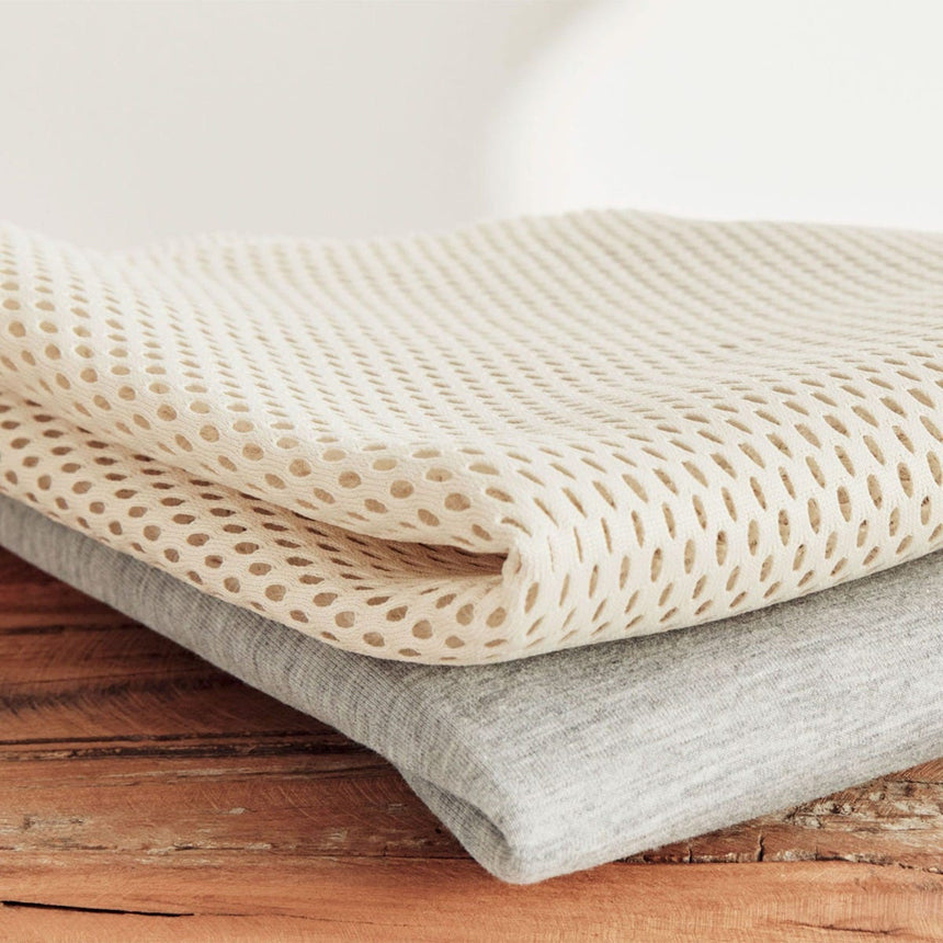 -3D mesh in 100% polyester is a super soft, sturdy and flexible fabric that hugs your baby. Because it is a technically advanced fabric that breathes, it is cool and comfy for the babywearer. It also dries quickly after washing. The luxurious, high-quality 3D mesh helps the baby carrier keep its shape even after multiple washes.