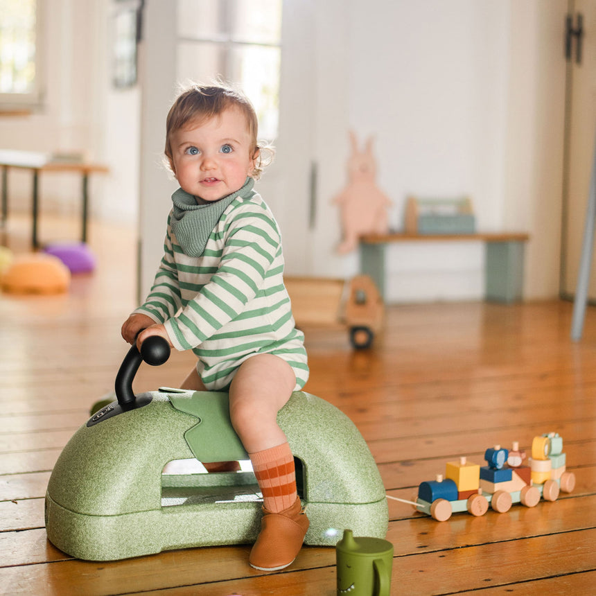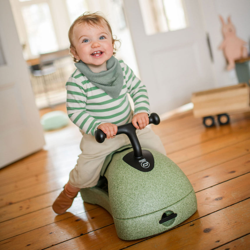 Developed for babies 6 months and older, the transformation takes just seconds and requires no tools. As a walker, babies can stand up, climb on, and push My First around the house. When you turn the bottom plate, your My First becomes a ride-on vehicle to explore the house and experience exciting adventures! Finally, remove the seat and use the bottom plate as a skateboard for even more fun!
