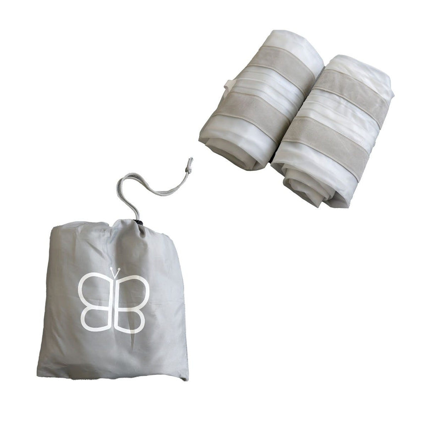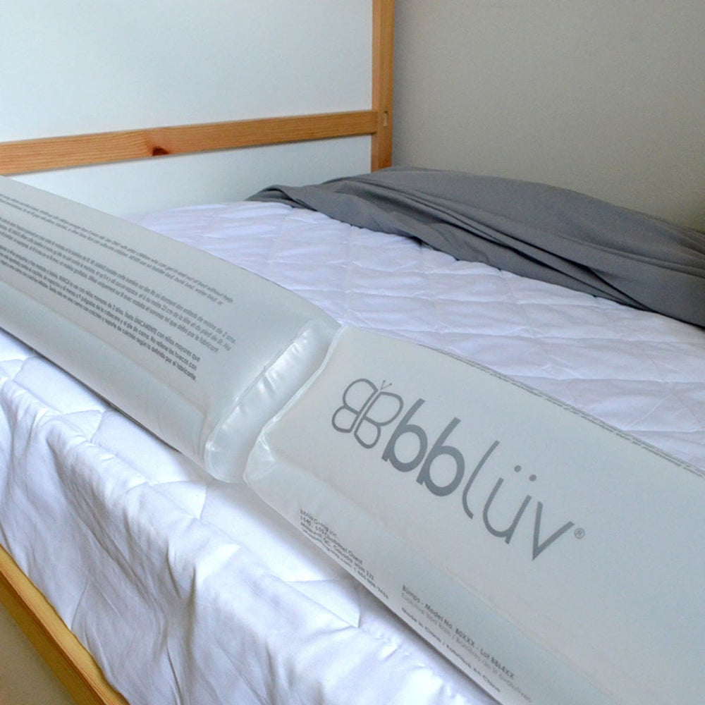 With the Bümps, prevent your toddlers from falling at night while letting them sleep peacefully. This set of 2 bed rails is a safe and discreet reminder to stay away from the edges of the bed. Designed for both everyday home use and outings, their shape and size allow them to slip easily under the fitted sheet of any bed while staying securely in place thanks to their non-slip strips. Compact and lightweight, inflate and deflate your Bümps quickly and easily take them with you on the go in the included carry bag!