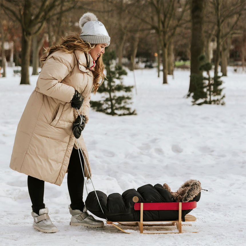 The integrated adjustable hood provides extra protection for your baby’s head, keeping them safe from the cold even on the chilliest days. Controlling the interior temperature of the footmuff is a breeze thanks to the removable front panel and snap buttons that allow the edge to be kept down.