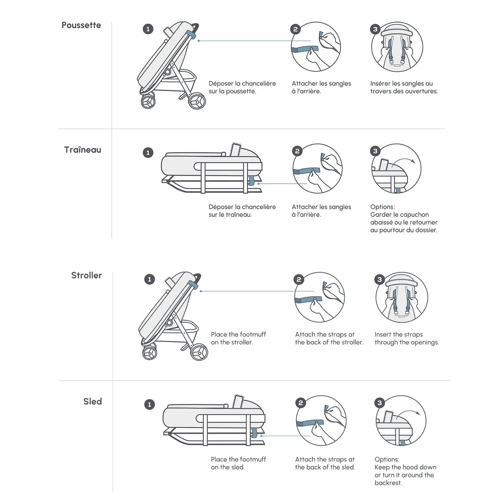 Bonus: with the purchase of a footmuff cover, we offer you a free mocha-colored neck warmer to keep your little one warm from head to toe!