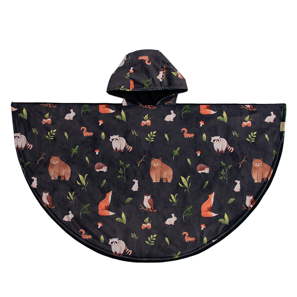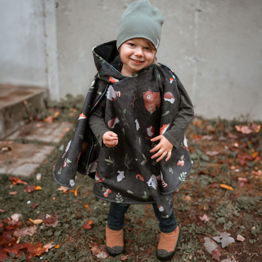 You can use the poncho in the traditional way, or as a cover. If you've strapped your child into their carrier and don't want to disturb them because they’re calm or asleep, simply drape the poncho over the carrier. Your baby will stay warm and dry between the house and the car. Once in the car, remove the poncho and place it over your little one like a blanket.