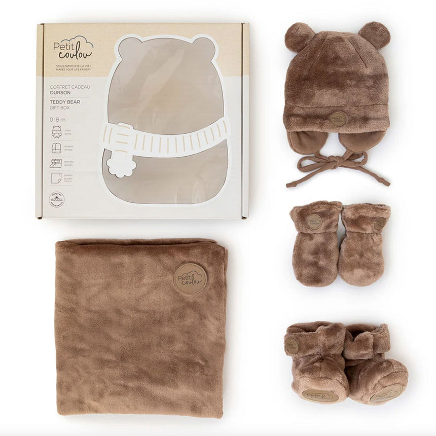 Teddy bear gift box for baby (4 accessories) - Moka 0-6M
