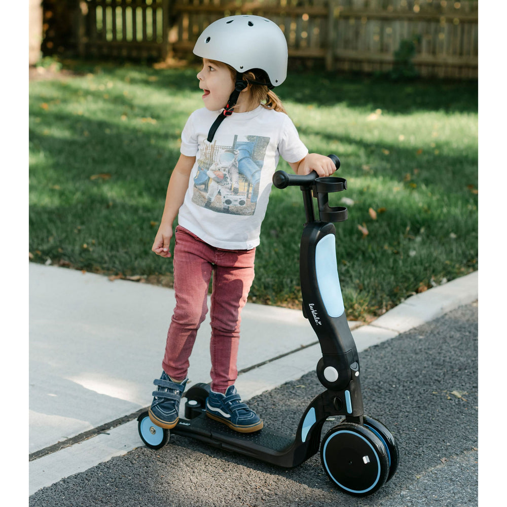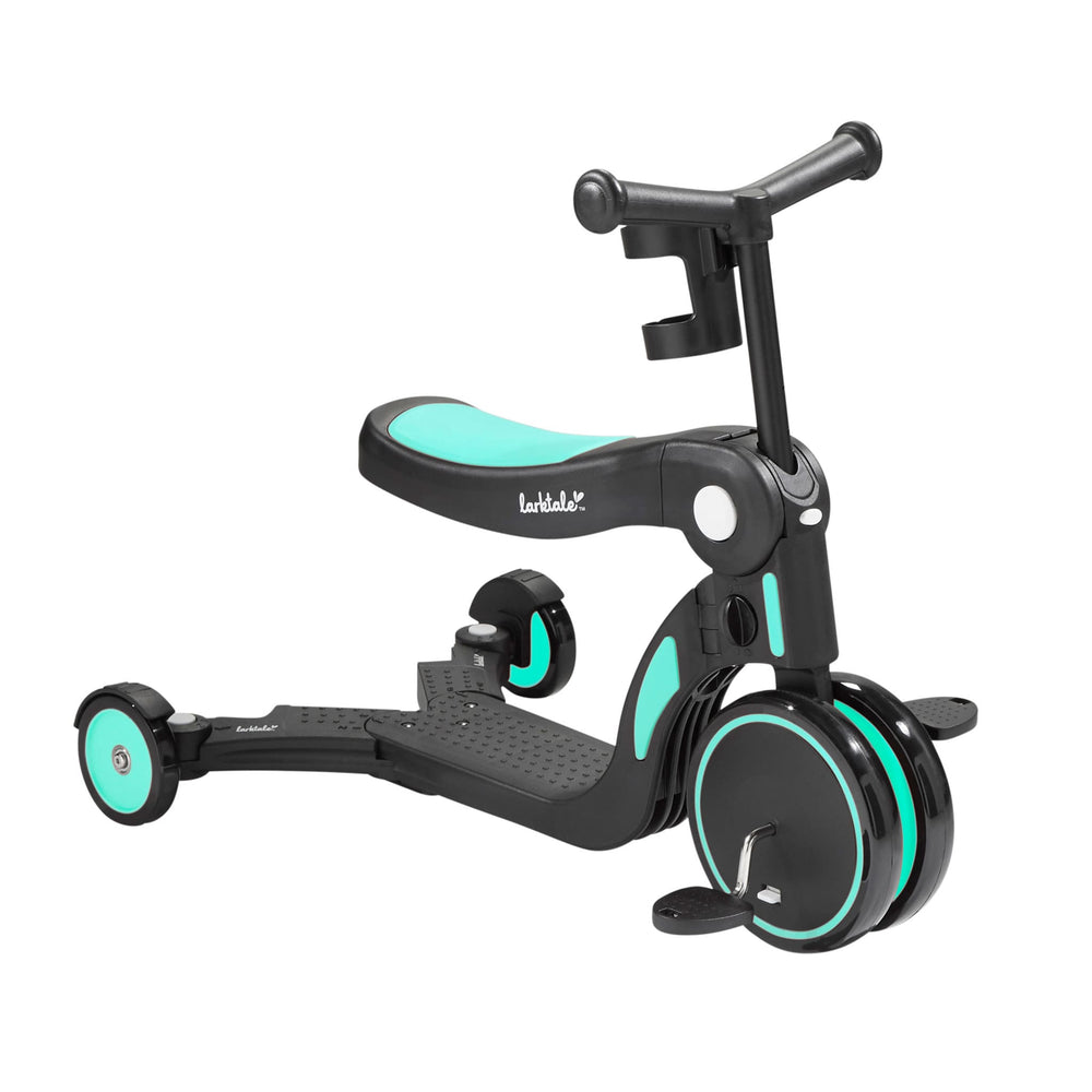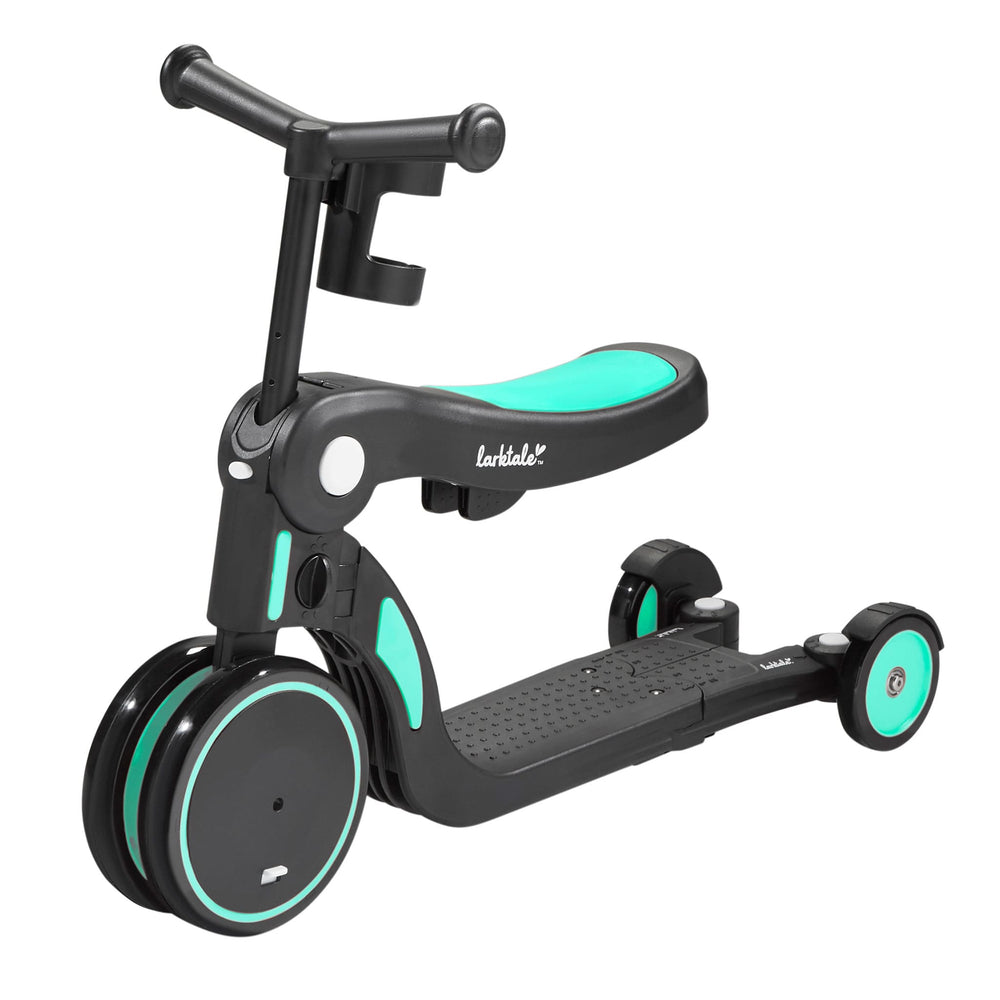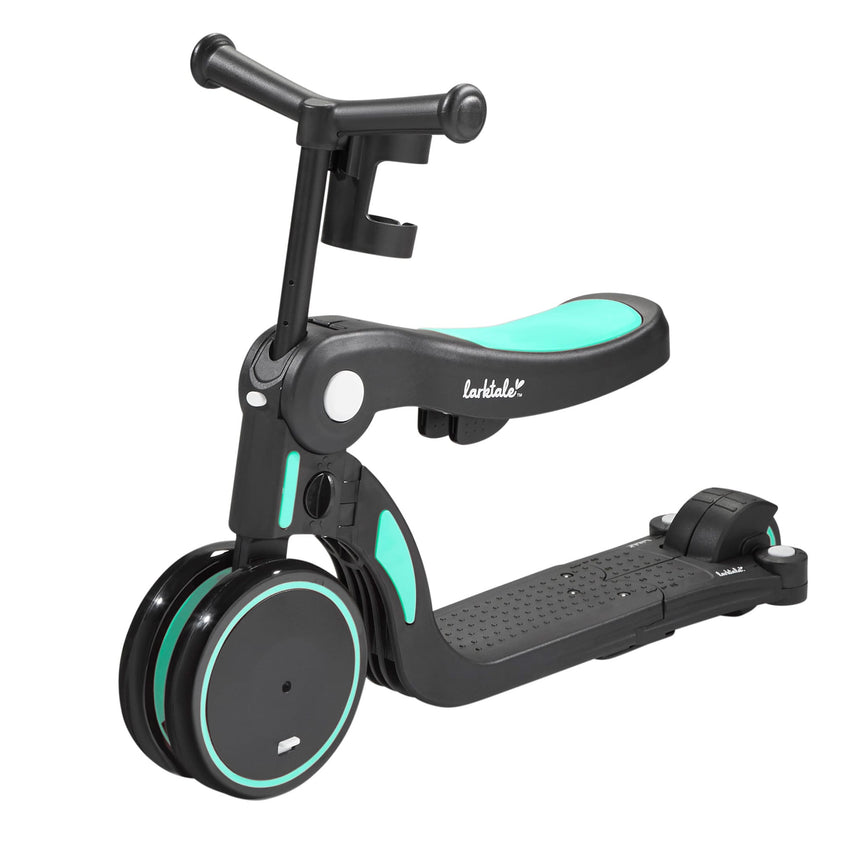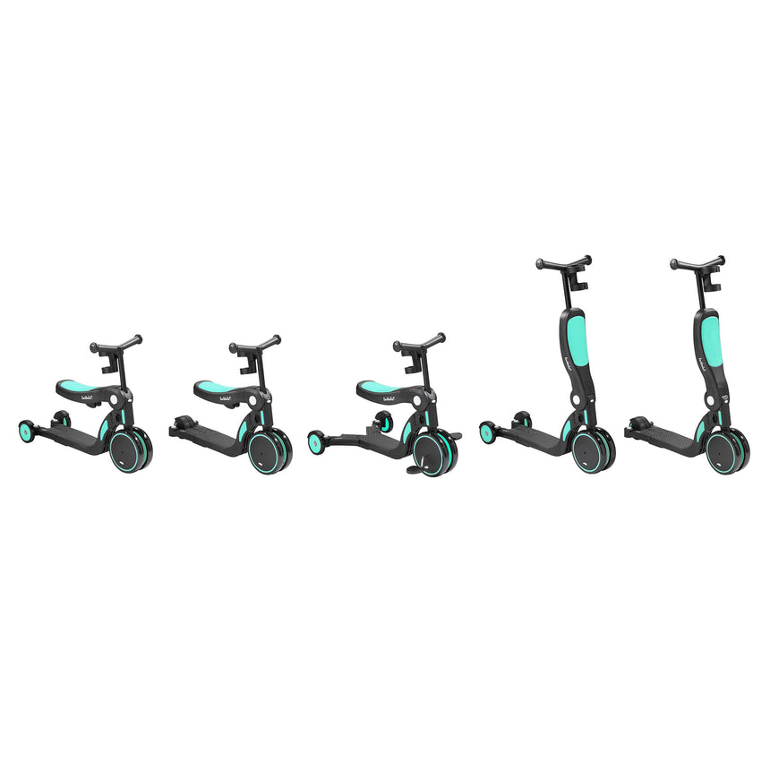 -5-in-1 system converts between Tricycle, Balance Bike, Ride-On, 3-Wheel Scooter and 2-Wheel scooter modes with ease.