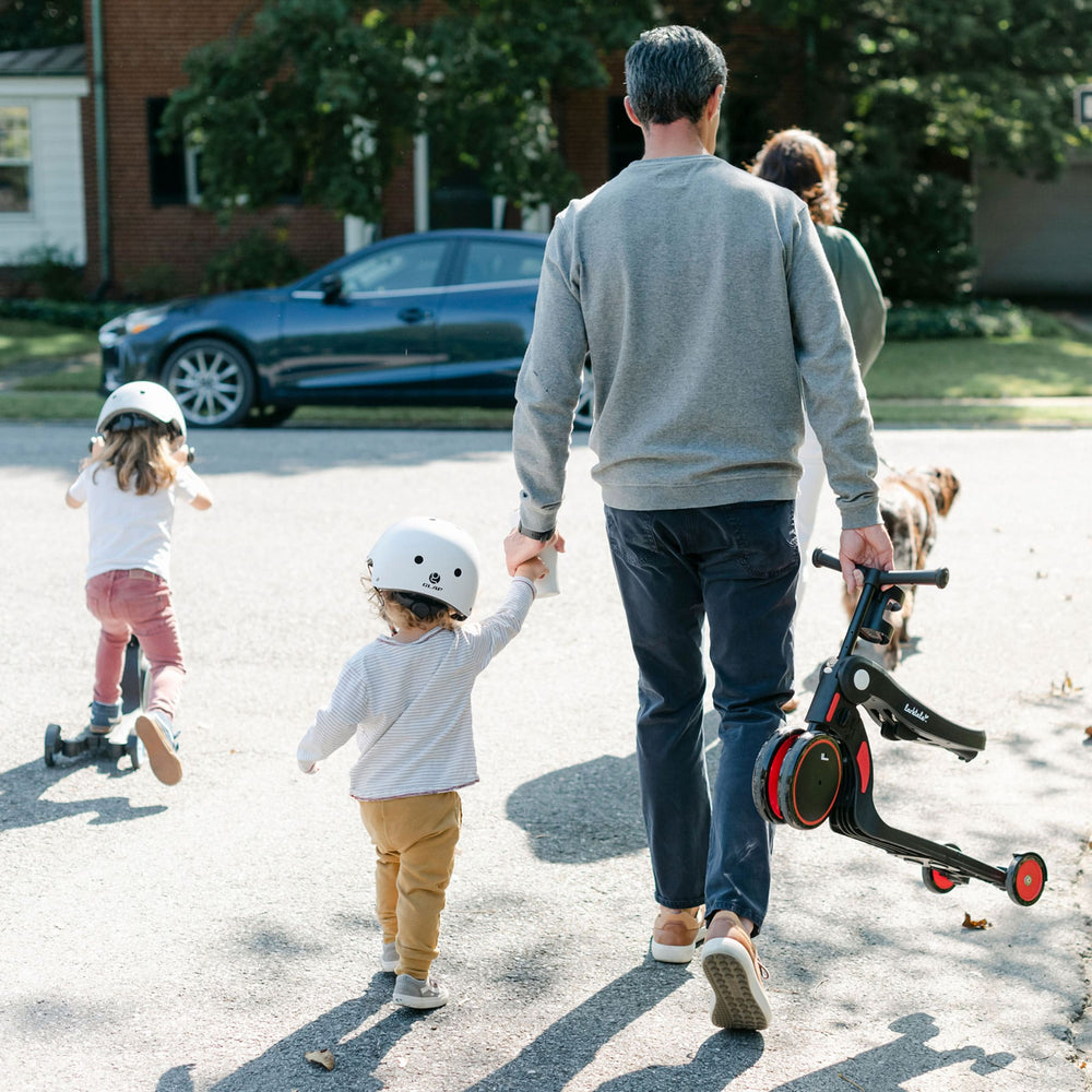 Keep them going as they’re growing. The all-new flexible scoobi™ by Larktale paves the way to a sporty ride for different ages and stages. Designed for active kiddos from 2-5 years old, the scoobi™ easily transitions from a Tricycle and Balance Bike for your youngest pathfinder to an easy-to-use Scooter for your older trailblazer. Short on storage? You only need one parking space for this multi-function toy. And it takes less than a minute to transition from one rider mode to another using push buttons and clearly numbered indicators for wheel positions. The pedals for the Tricycle mode can be attached or removed quickly and even stow away neatly when not in use. The all-in-one scoobi™ will keep your kids on a roll for years to come…and the road ahead is fun!